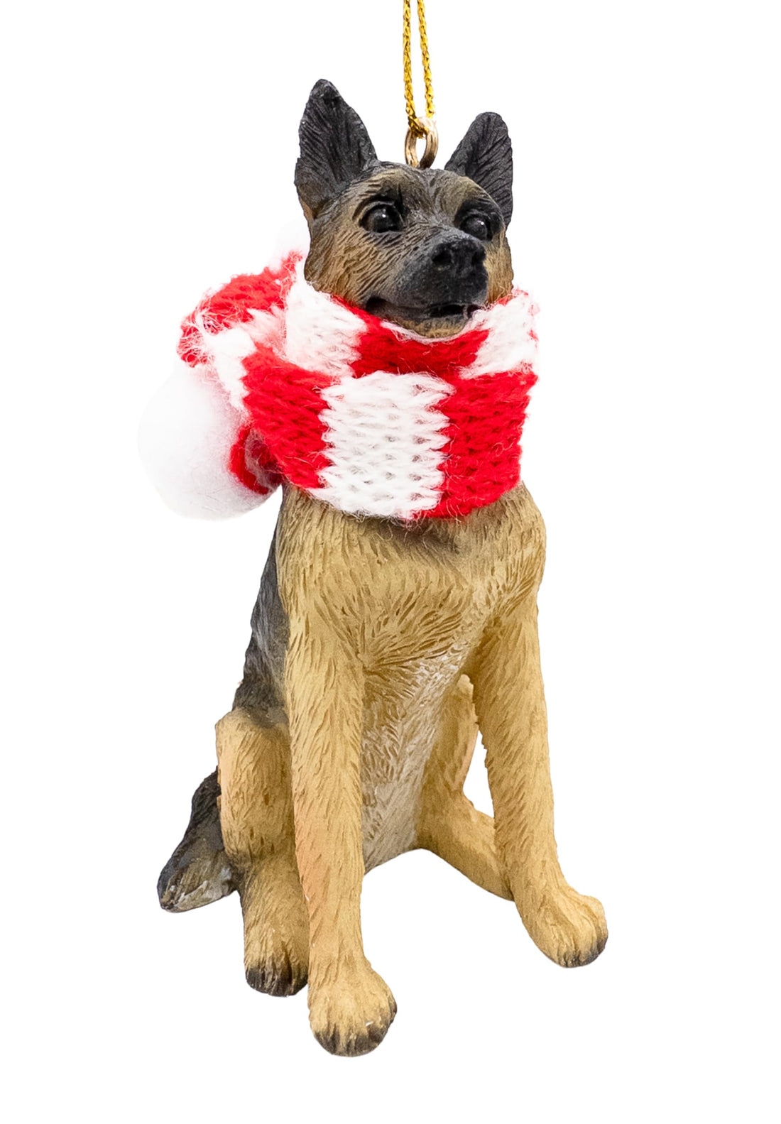 German Shepherd Christmas Dog Ornament with Fabric Candy Cane Scarf
