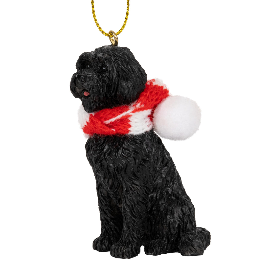 Portuguese Water Dog Black Christmas Tree Ornament Fabric Candy Cane Scarf