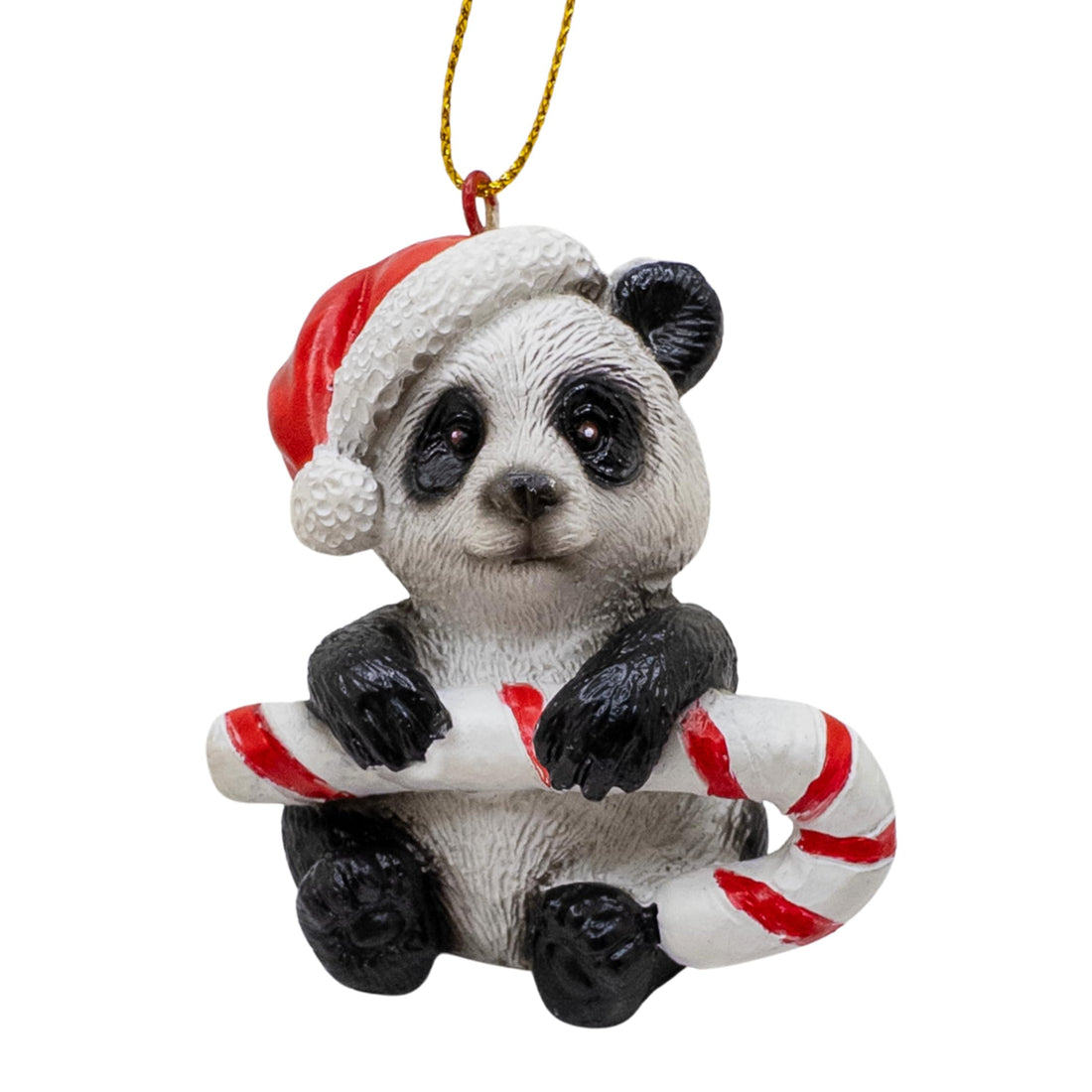 Panda Bear Holding Candy Cane Wearing Santa Hat Christmas Tree Ornament