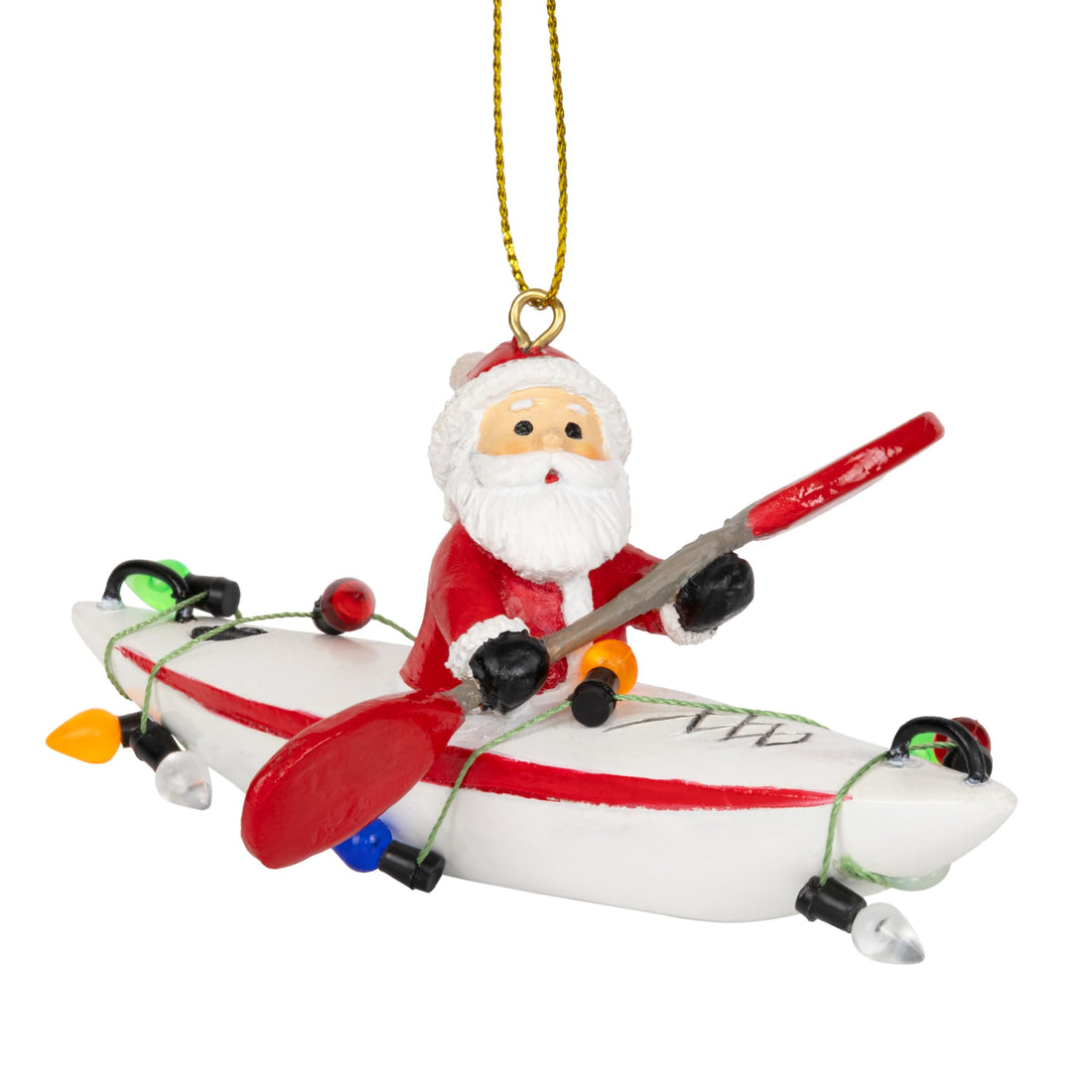 Santa Claus Paddling in A Kayak Christmas Tree Outdoor Lovers Ornament