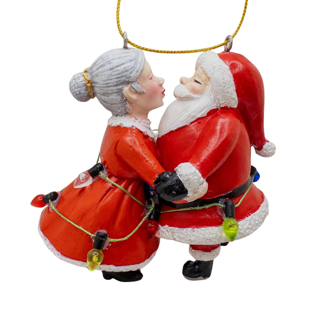 Santa and Mrs Claus Kissing Wrapped in Lights Christmas Tree Ornament