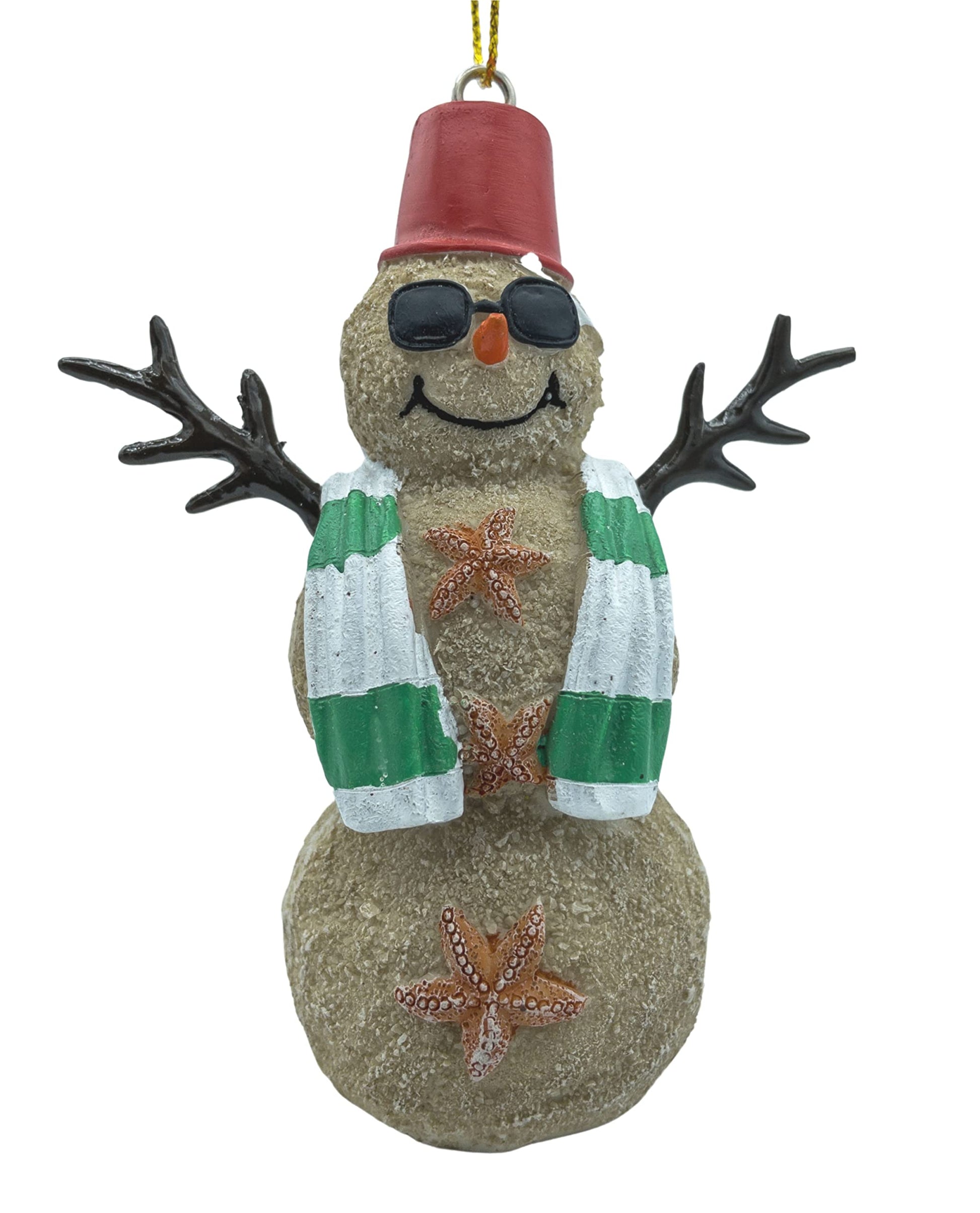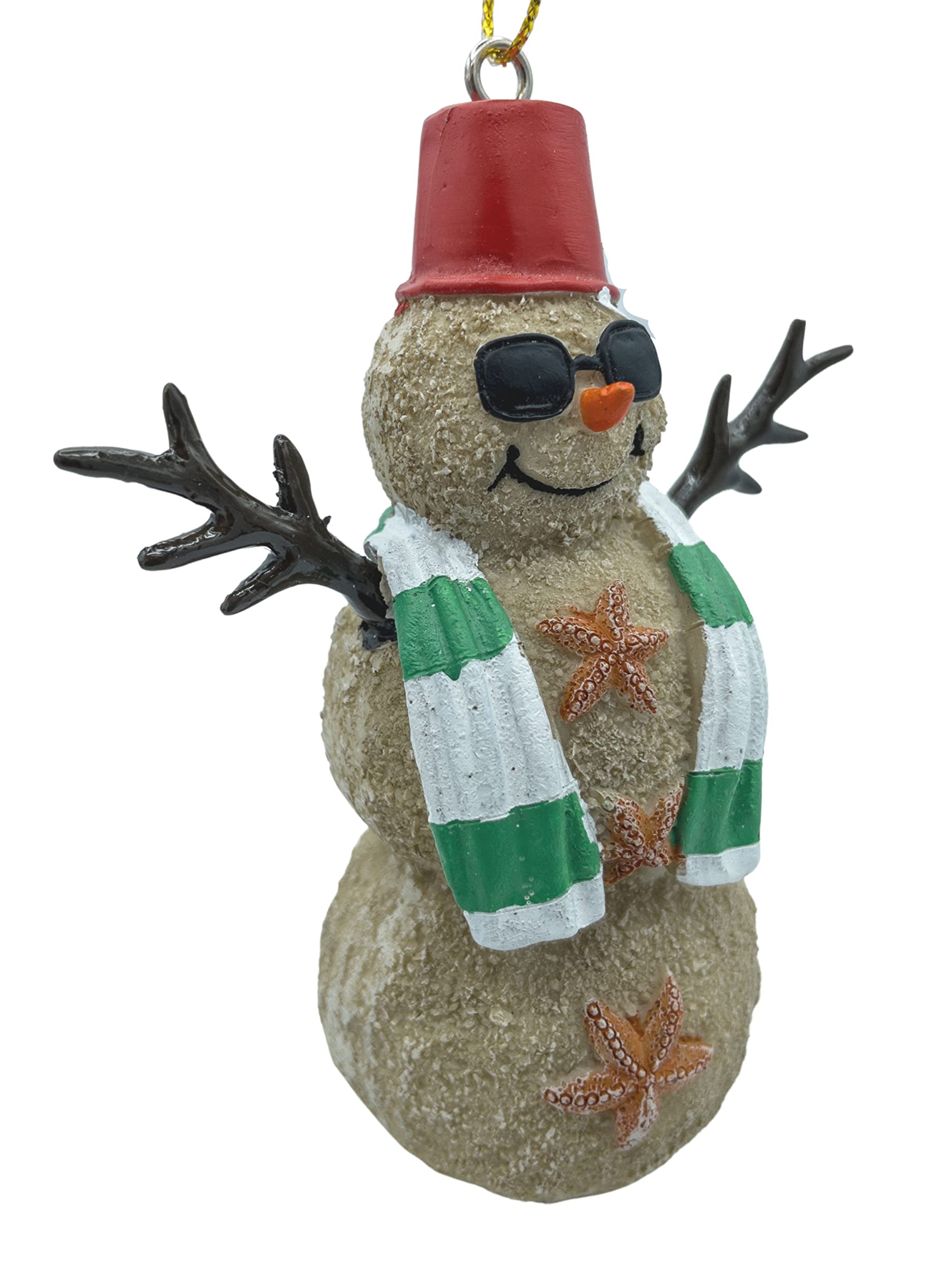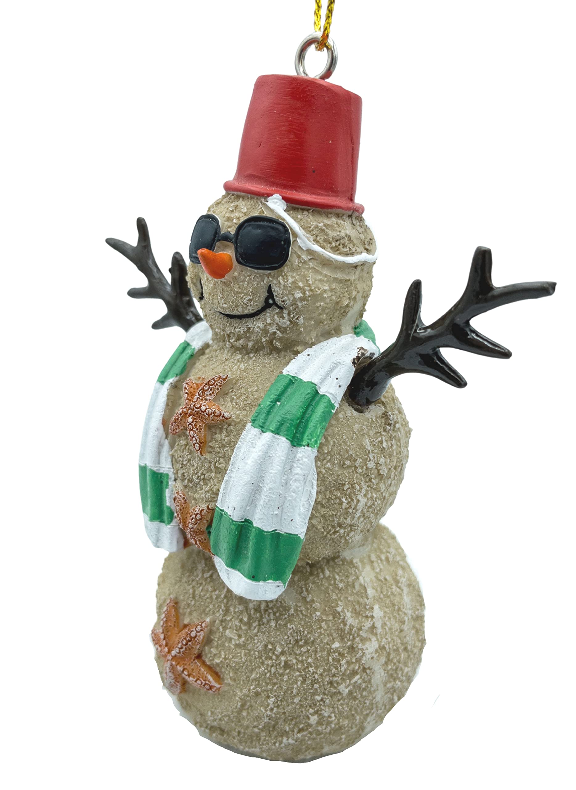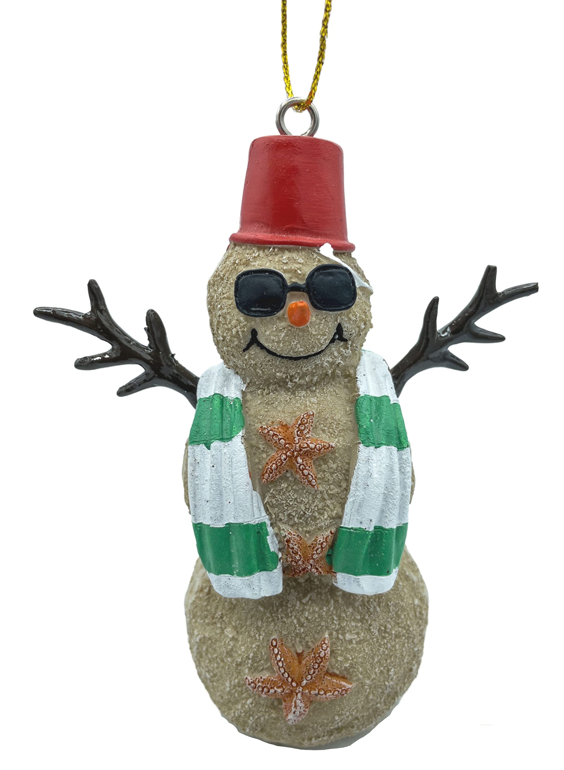 Details: Bring a bit of coastal charm to your holiday decor with this Sand Snowman Beach Christmas Tree Ornament! Perfect for beach lovers, this unique ornament features a playful snowman made out of resin to look like sand, complete with starfish buttons, sunglasses, and a red sand bucket. Designed to capture the fun of a beachy Christmas, it’s crafted with attention to detail and vibrant colors, making it a standout on any tree. Whether you're dreaming of a sunny holiday or just love the ocean, this ornament is a fun way to celebrate the season with a warm, tropical twist! Weight 4oz, Size in Inches 3.75 in height, 1.62 length, 3 width