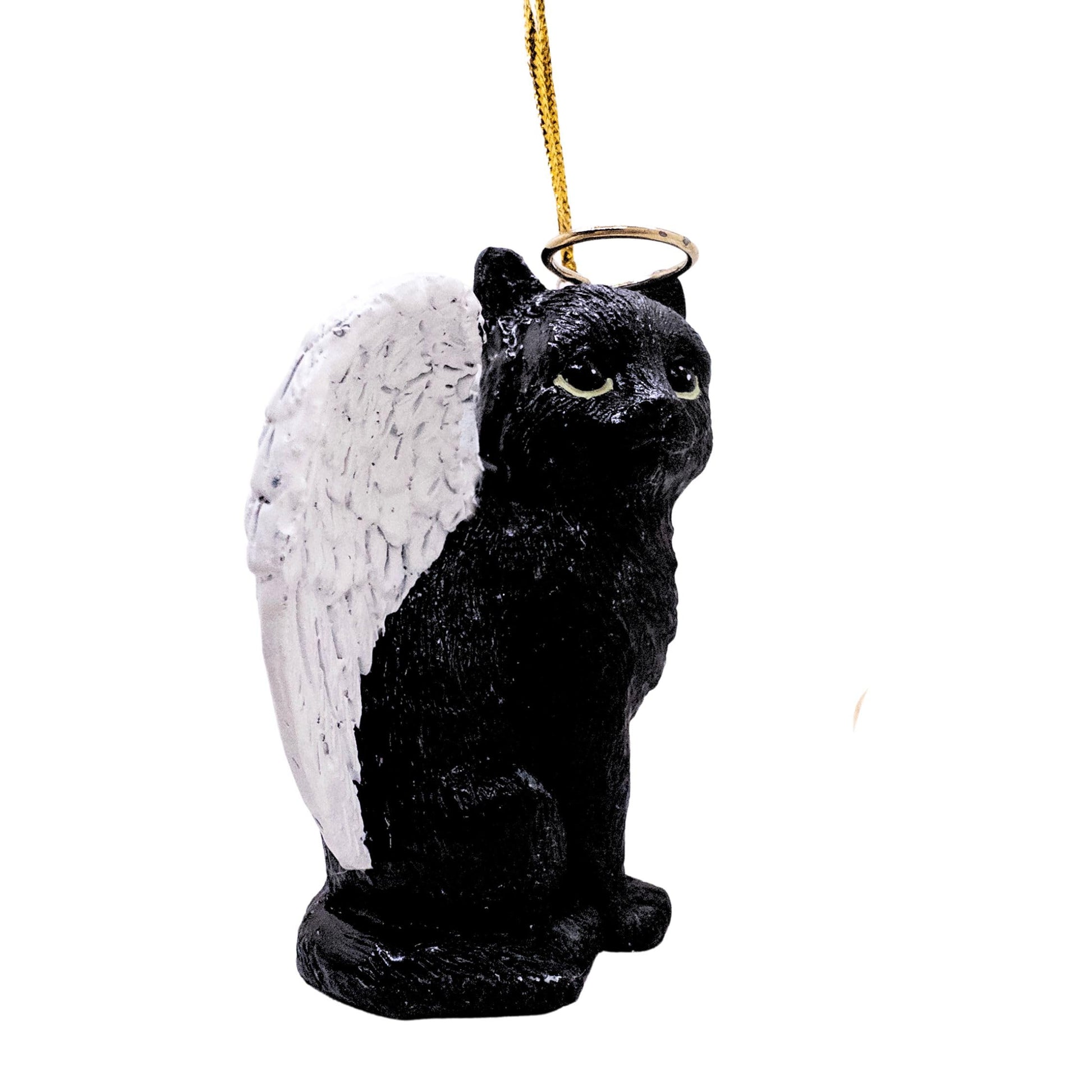 Black Cat Angel Tabby Kitty Christmas Tree Memorial Ornament Bereavement