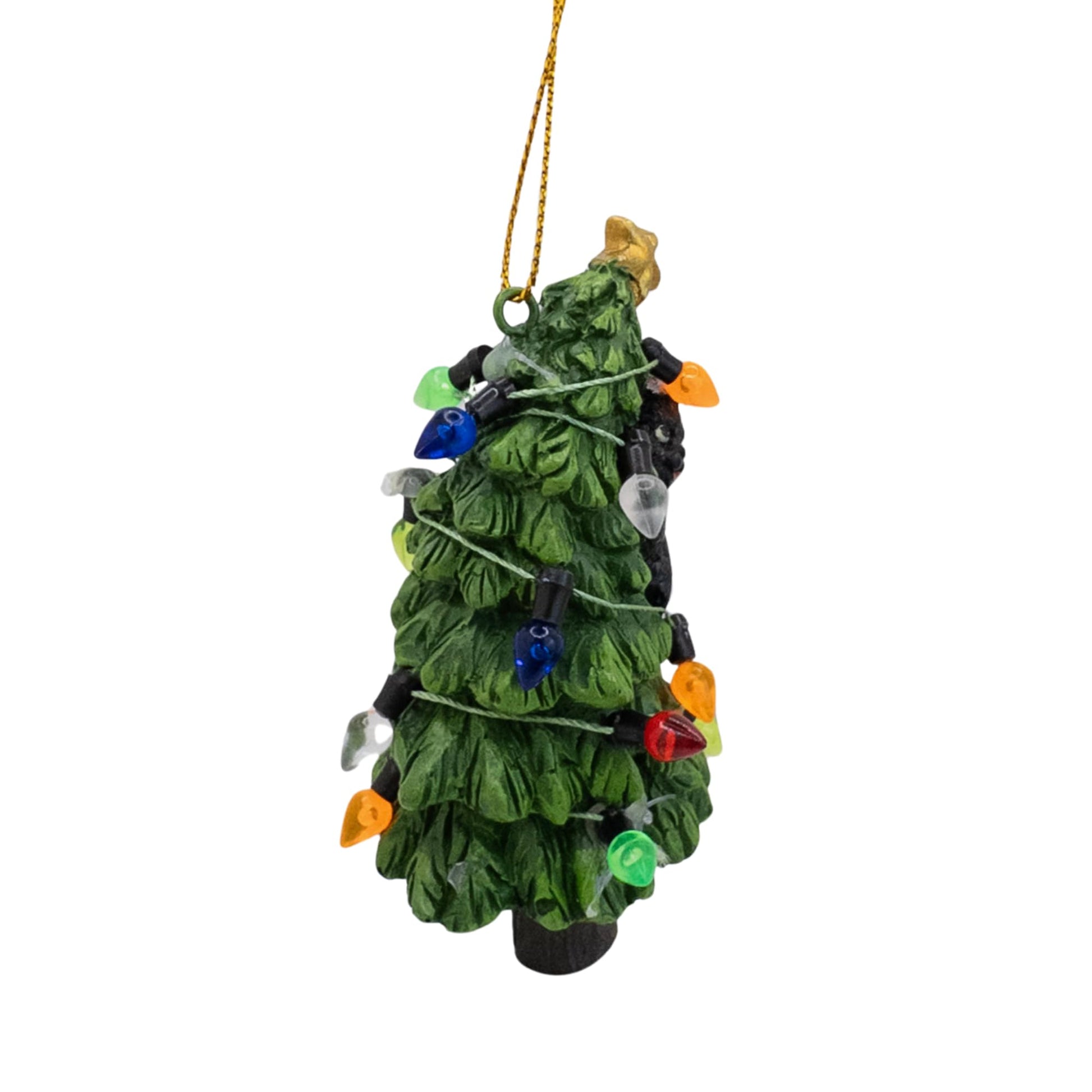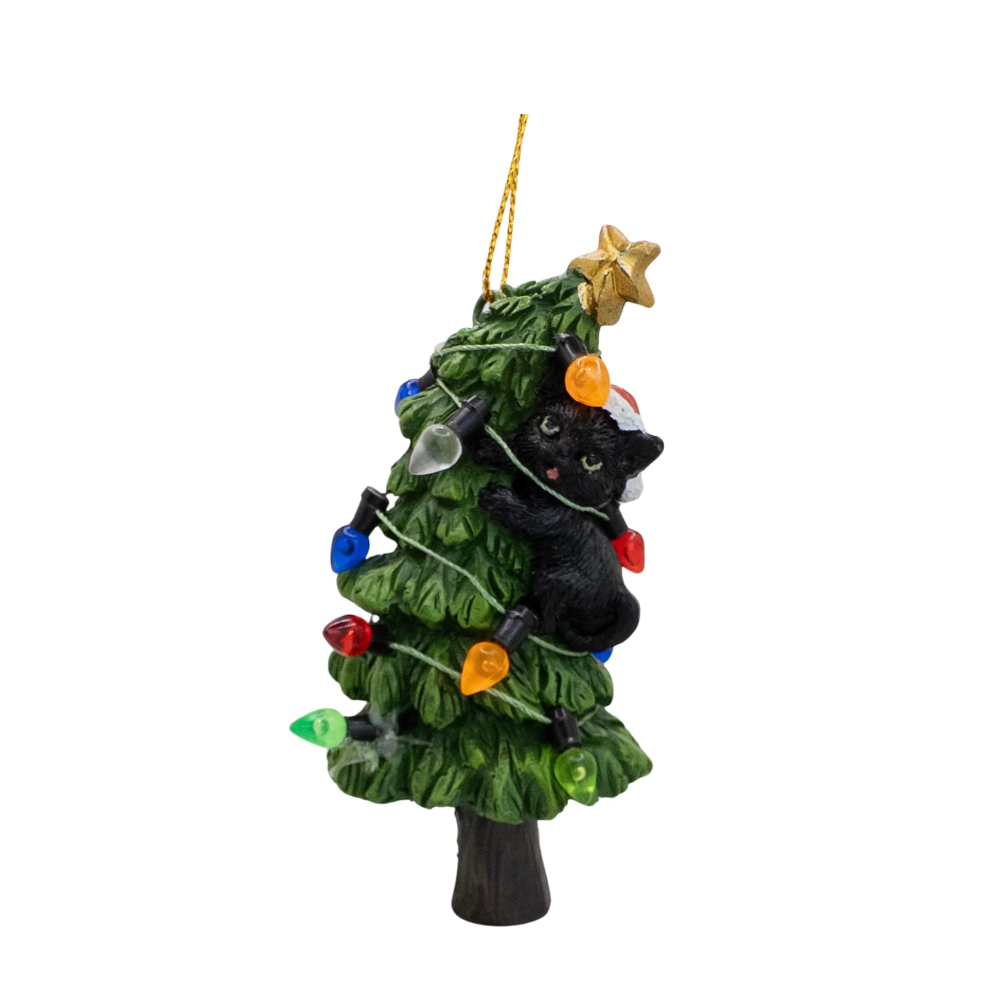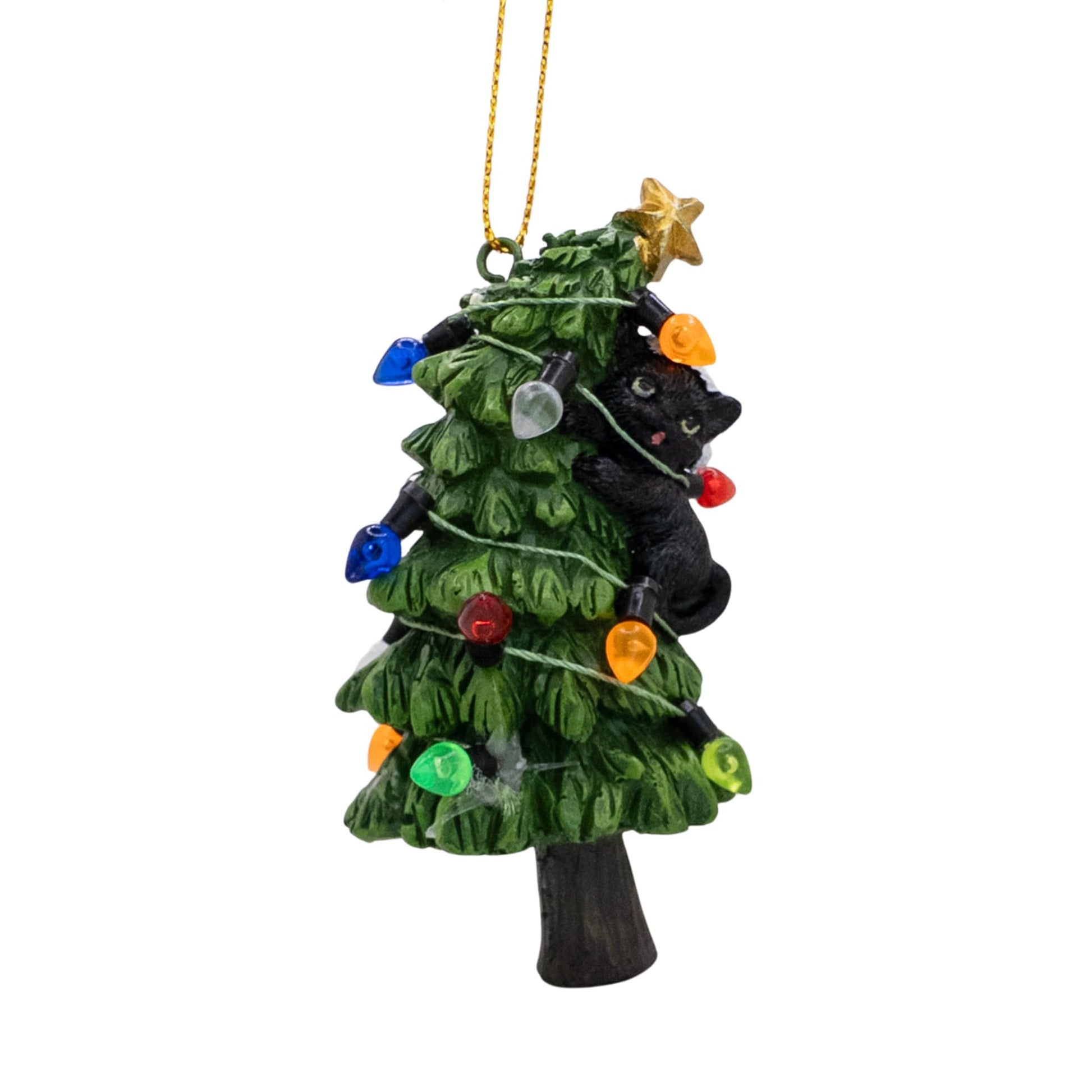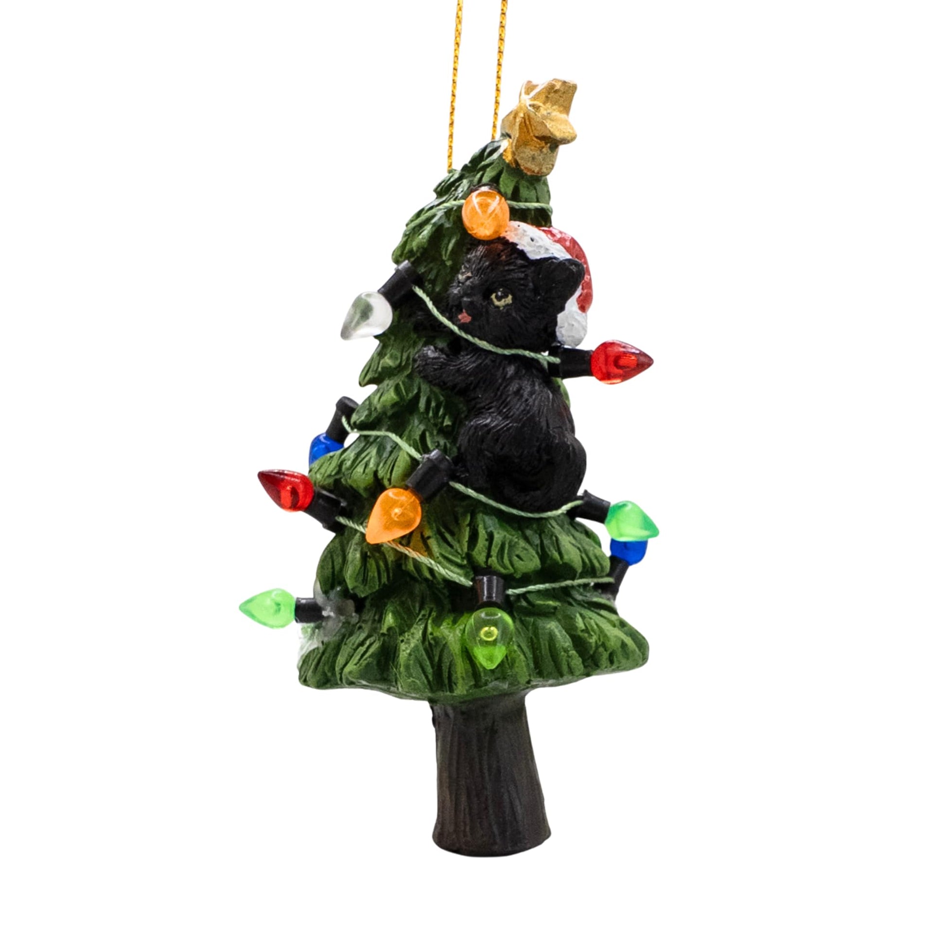 Black Cat Knocking Down Christmas Tree Funny Ornament