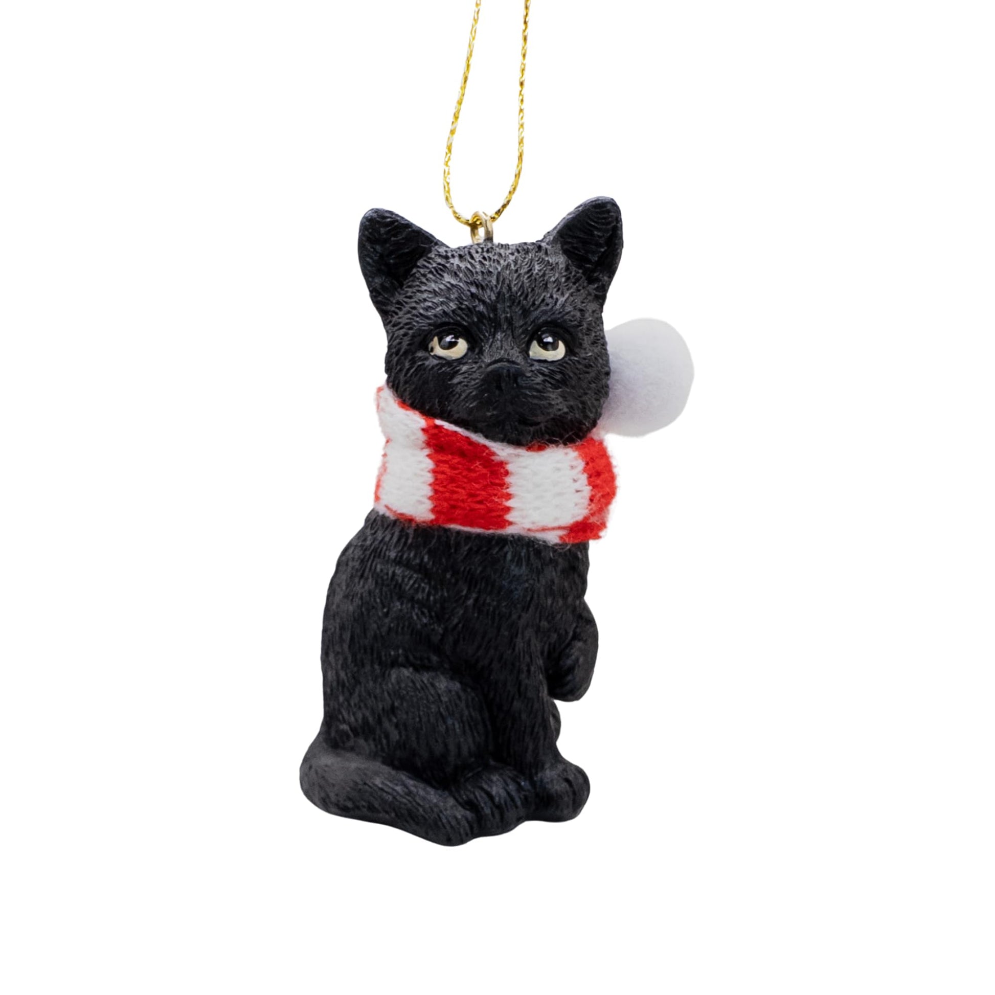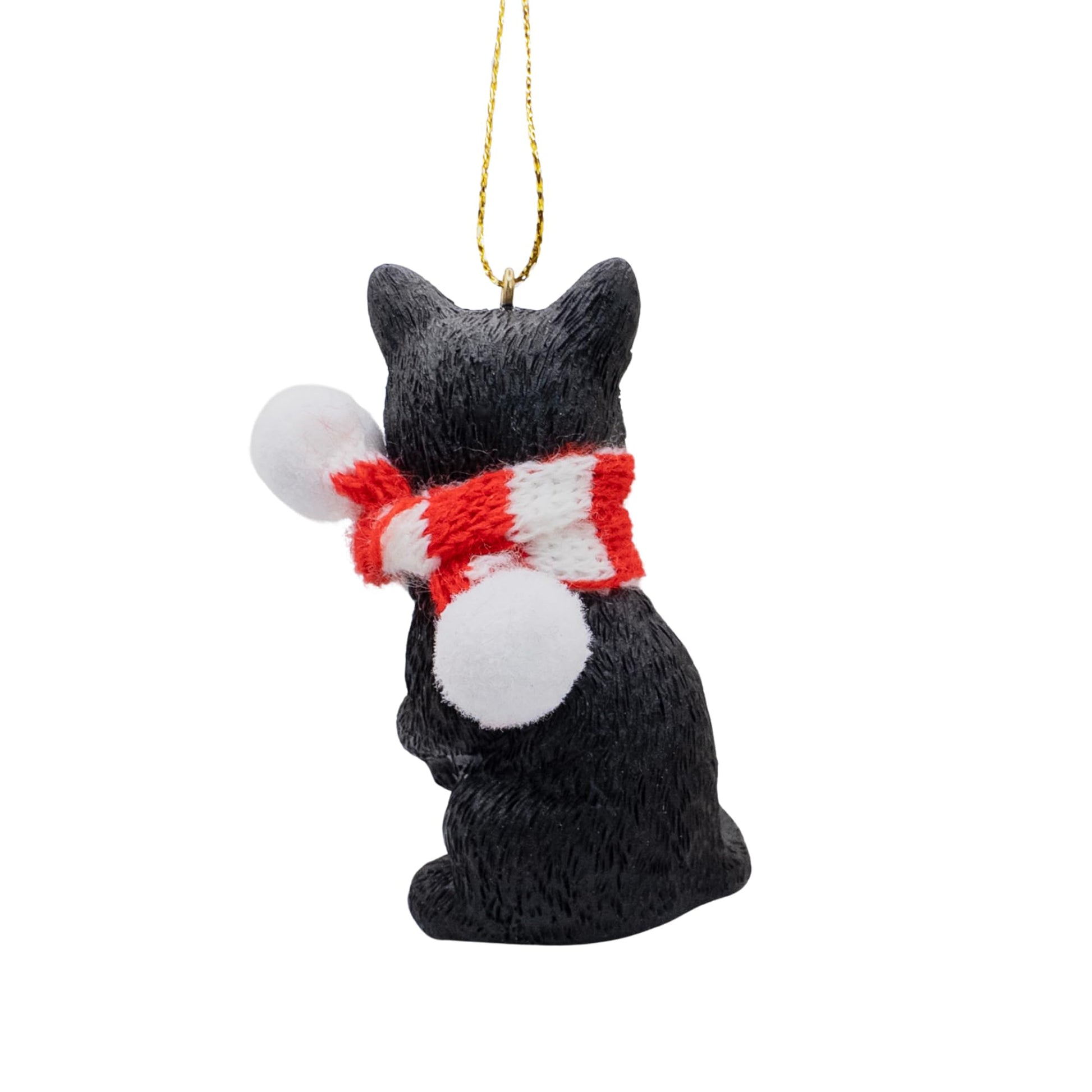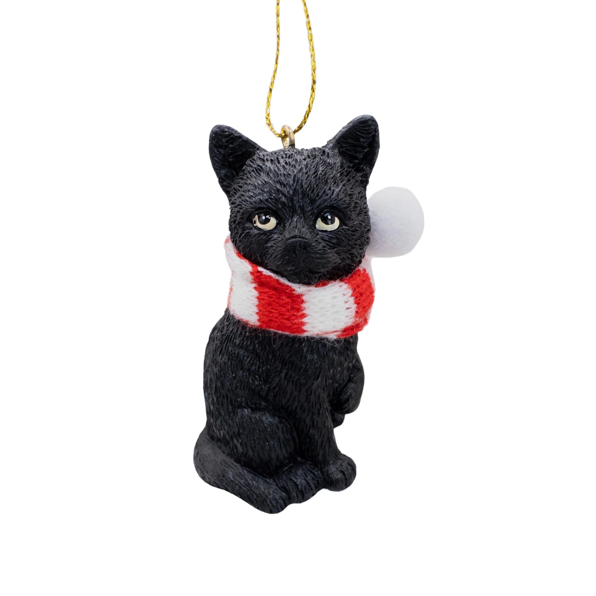 - Adorable Black Cat Design: Features a cute black tabby cat wearing a festive candy cane-striped scarf, adding charm to your holiday decor.