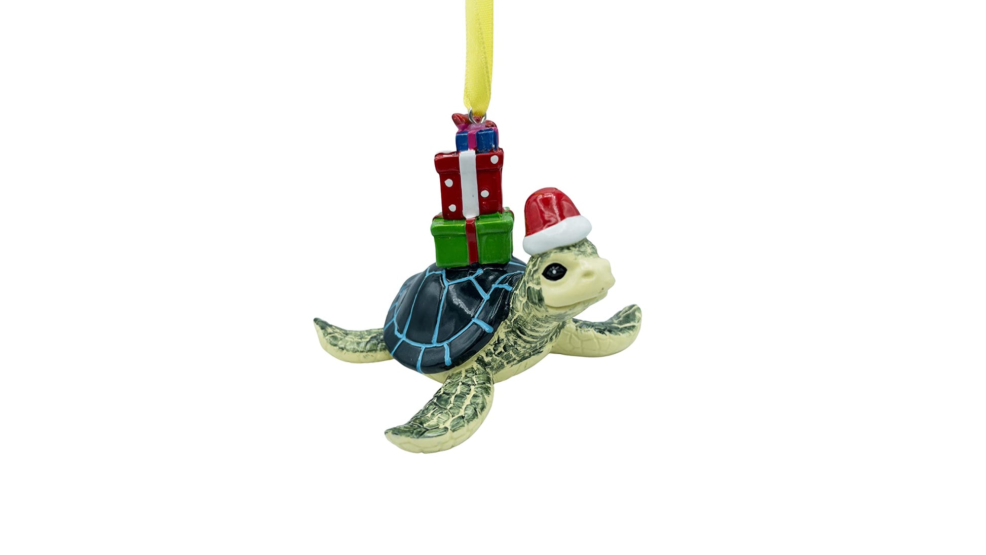 Details: This is a great blue sea turtle Christmas ornament. The size is 2 3/4" inches height by 3 1/2" inches length. December Pets is the place for all kind of different ornaments and gifts
