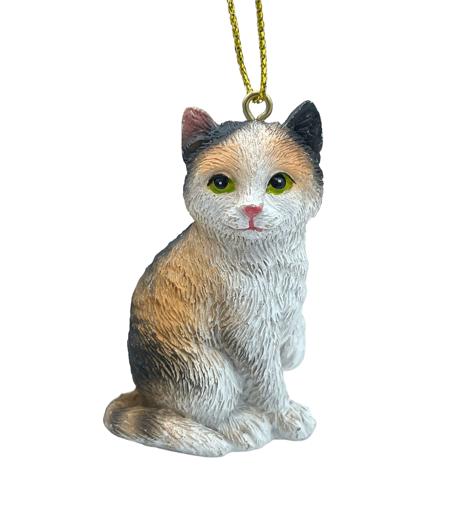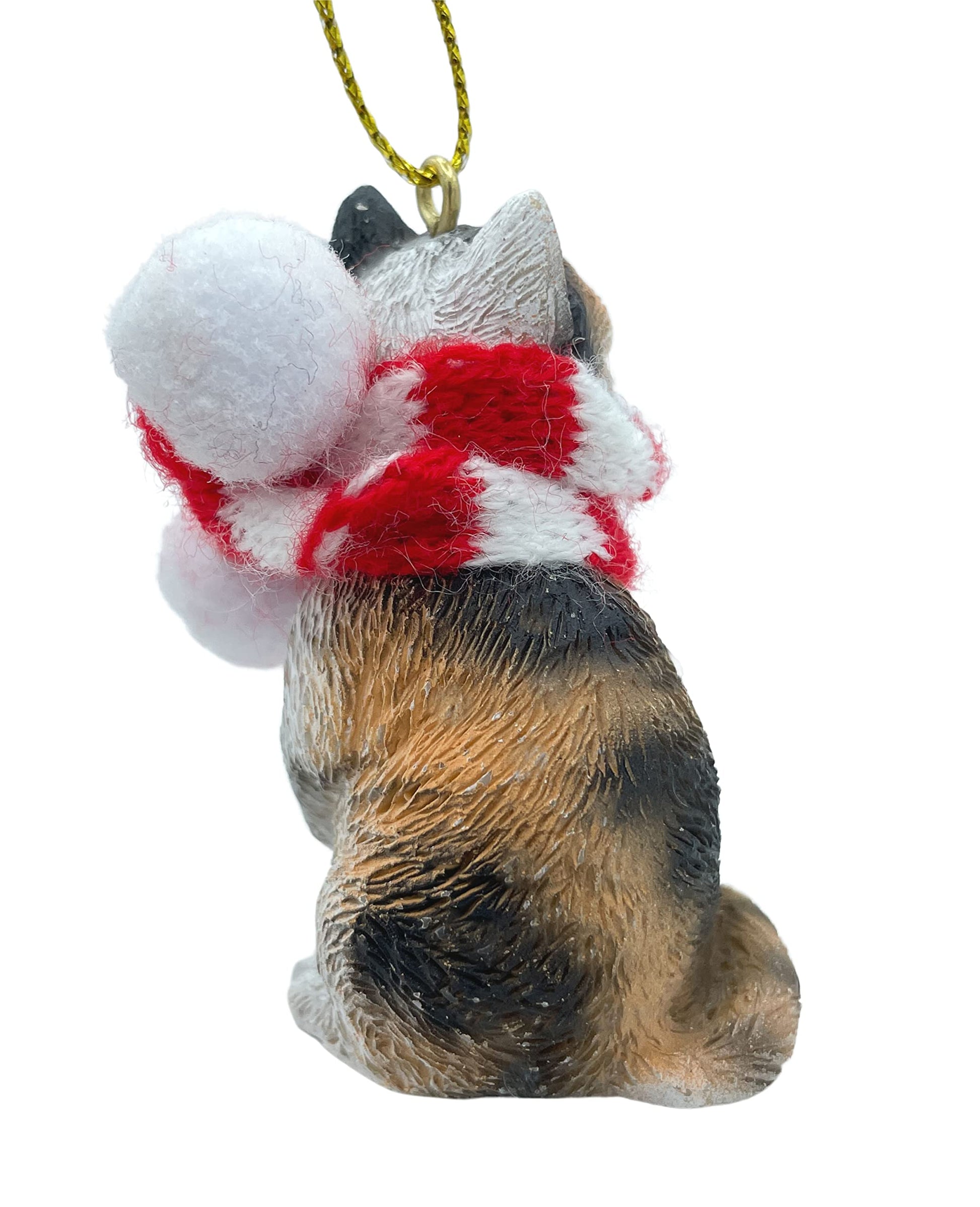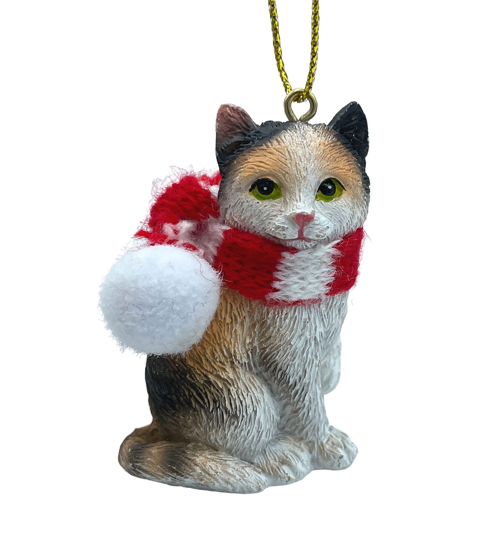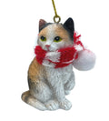 Calico Cat Tabby Kitty Christmas Tree Ornament with Candy Cane Scarf