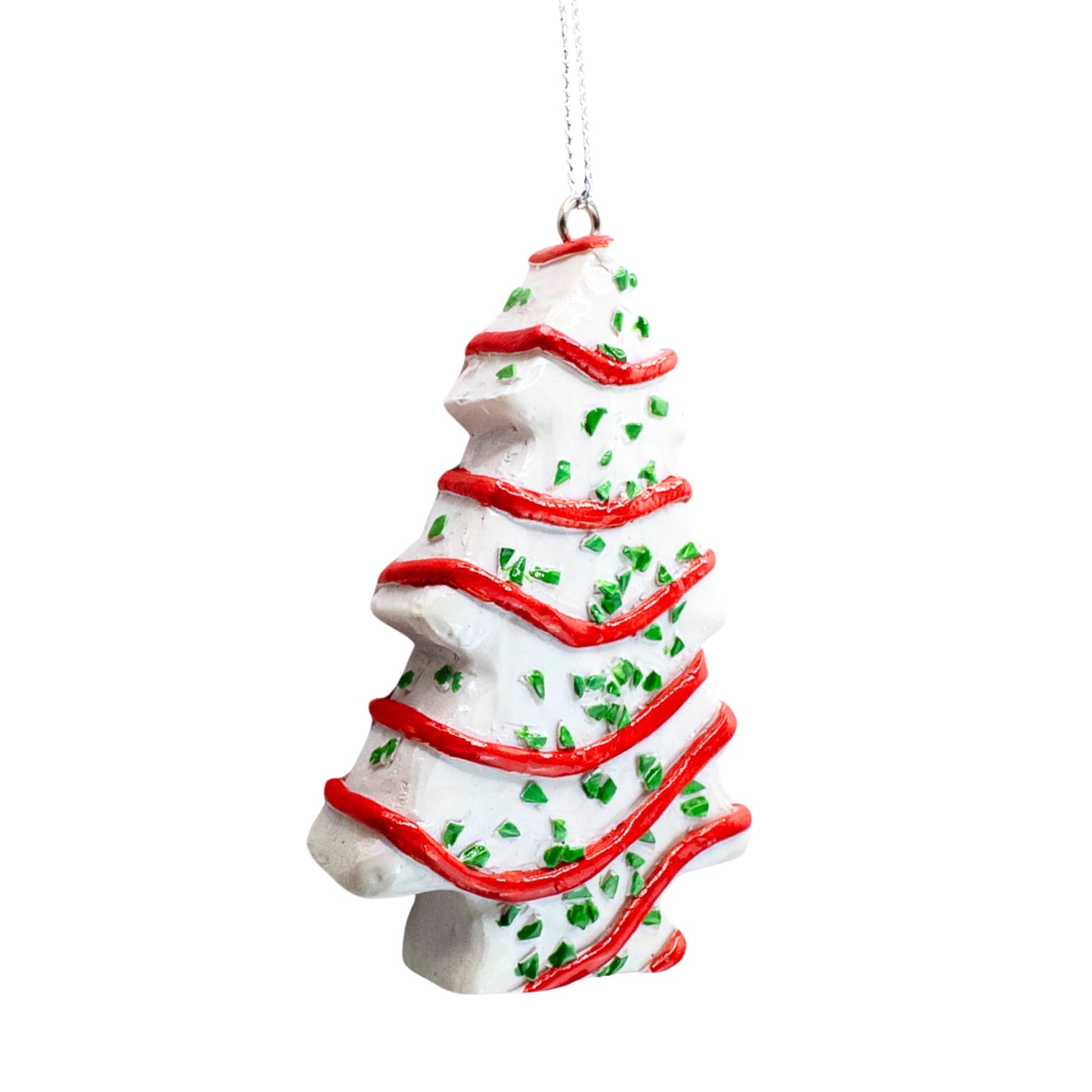 Details: Add a sweet touch to your holiday decor with this charming Christmas Tree Cakes Ornament! Inspired by the iconic holiday snack, this ornament features a festive Christmas tree-shaped cake complete with colorful icing and sprinkles. Designed with realistic details, it brings the joy of holiday treats right to your tree. Crafted from durable materials and finished with a glossy shine, it’s a delightful addition for food lovers and holiday enthusiasts alike. Whether you're reminiscing about favorite seasonal snacks or simply love playful ornaments, this Christmas Tree Cakes ornament is sure to bring smiles and holiday cheer! Weight 1.9 ounces Size in inches 3.12 height 1.87 in length 0.50 width