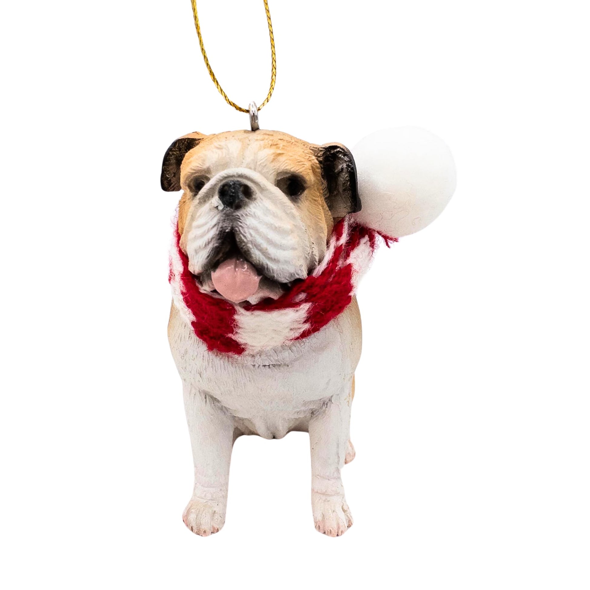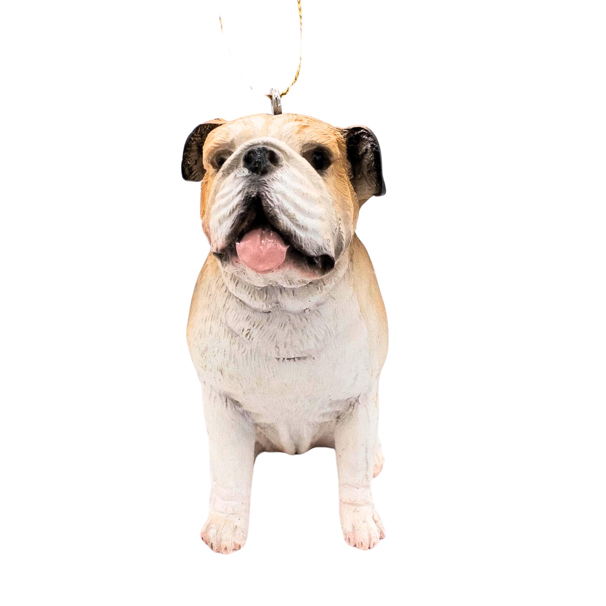 Details: Add a touch of adorable charm to your holiday season with our English Bulldog Christmas Tree Ornament. This delightful ornament captures the distinctive features of the English Bulldog, showcasing its lovable wrinkled face and sturdy build in a festive design. Crafted with high-quality resin materials and attention to detail, this ornament is designed to bring joy and warmth to your Christmas tree for years to come. Perfect for Bulldog enthusiasts and dog lovers, this ornament adds a personal and heartwarming touch to your holiday decorations. Celebrate the season with the endearing spirit of the English Bulldog! Weight 2.6 ounces Size in inches in 2.75 height, 2 length,1.25 width