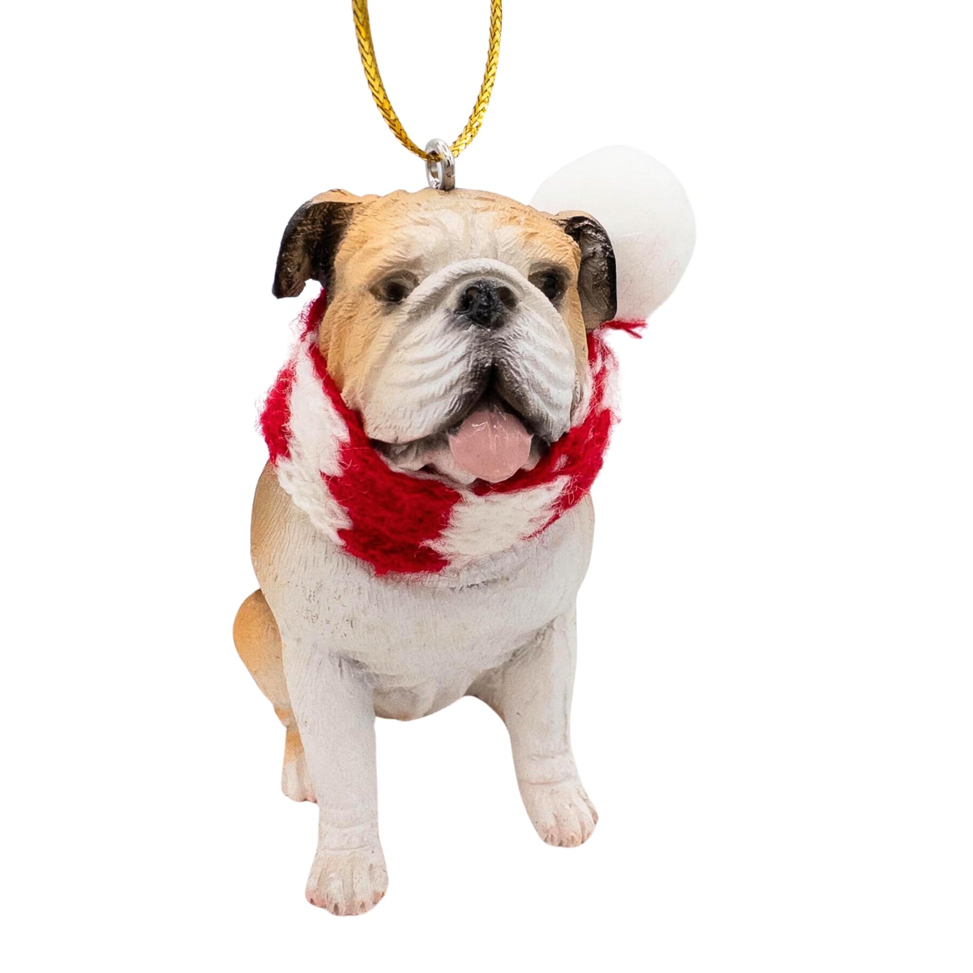 English Bulldog Dog Lovers Christmas Tree Ornament with Candy Cane Scarf