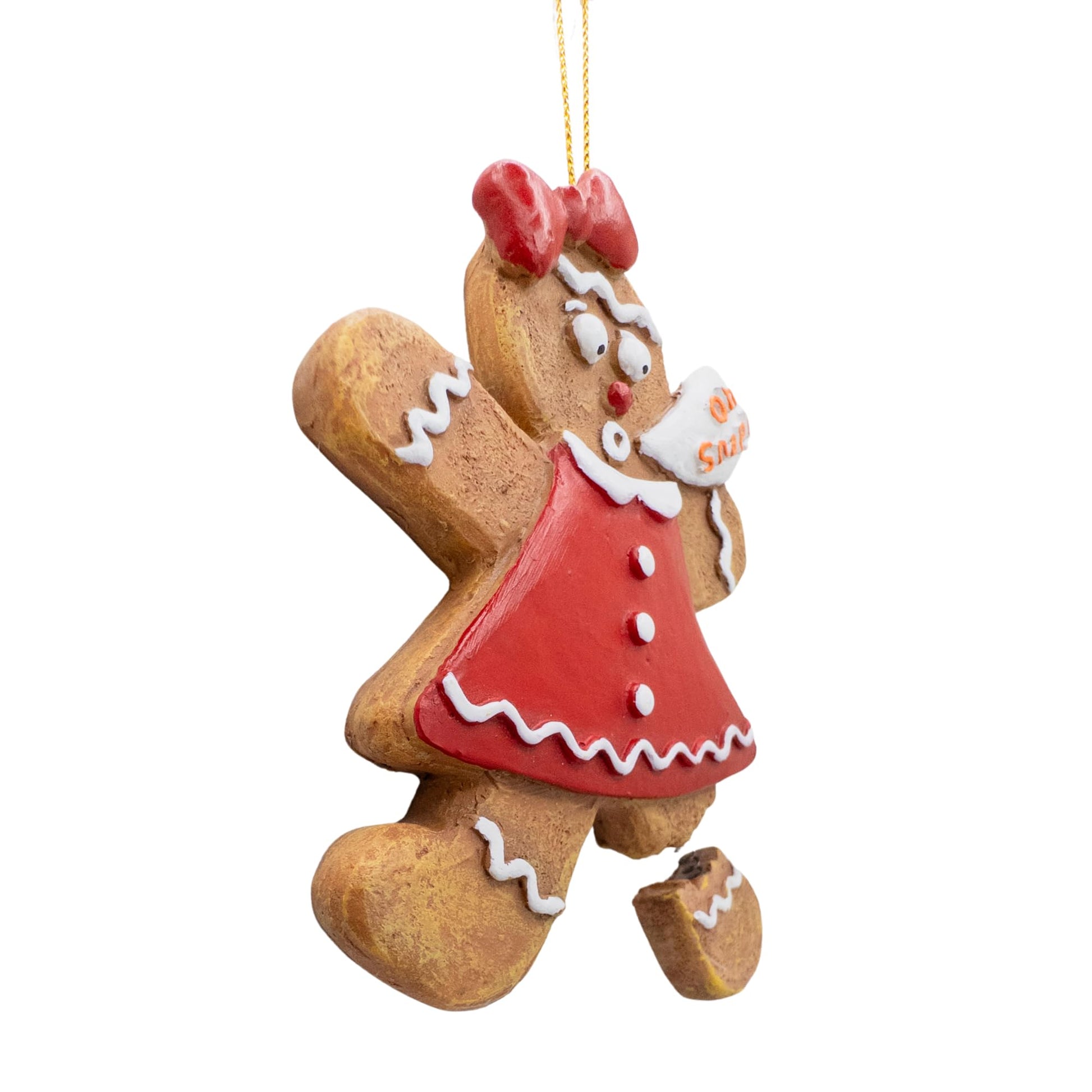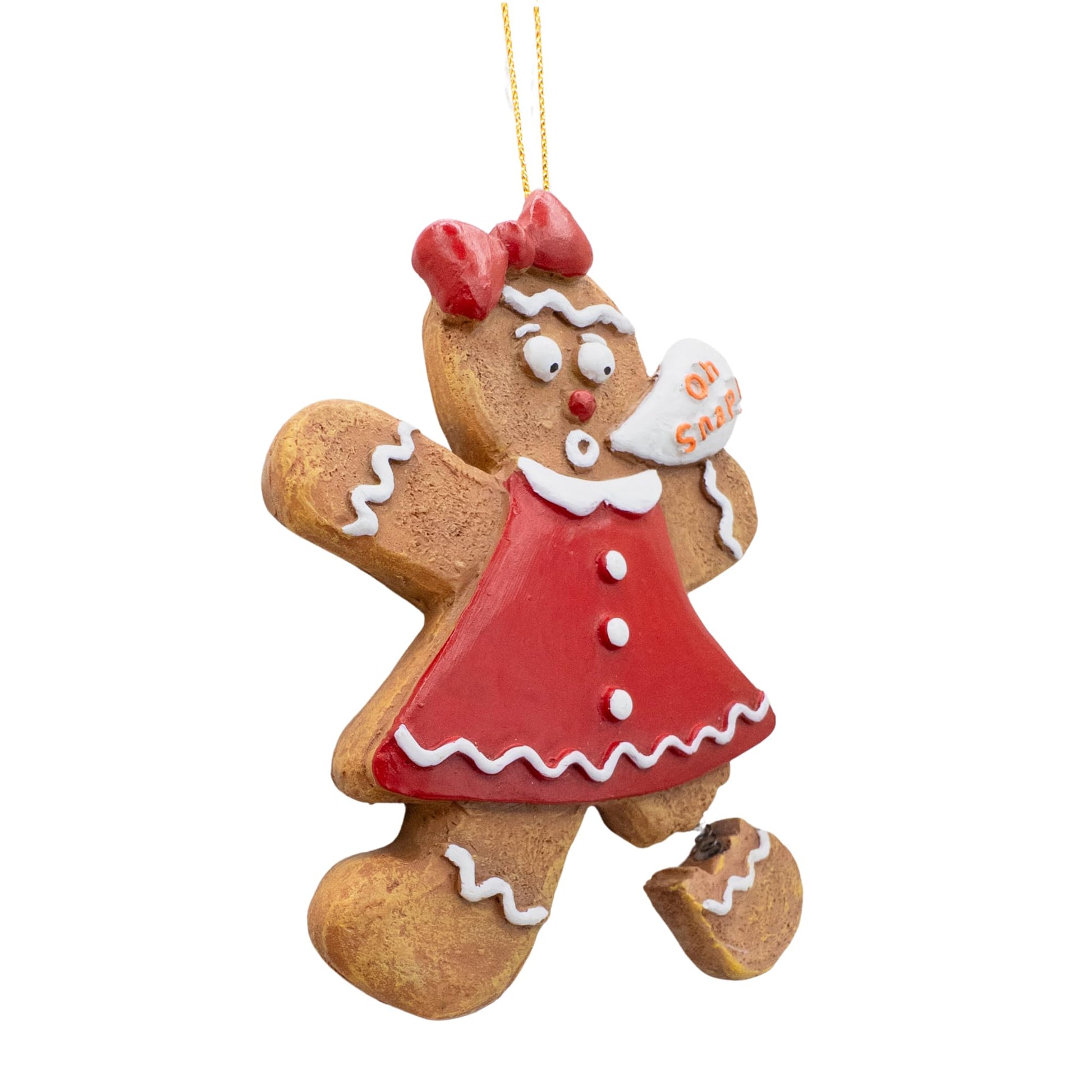 - Humorous Design: Features a gingerbread woman with a broken leg and a fun "Oh Snap!" caption, adding a funny touch to your tree.