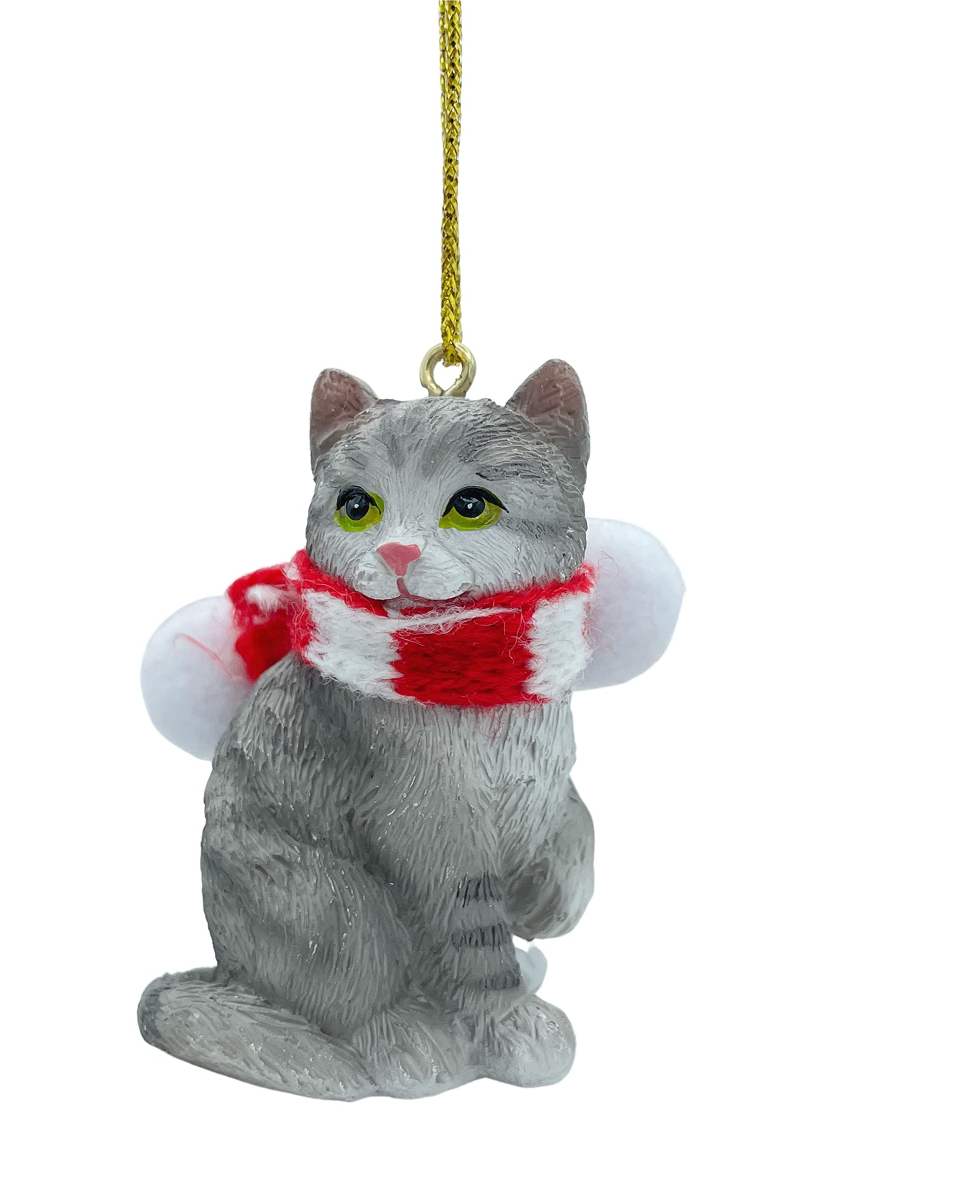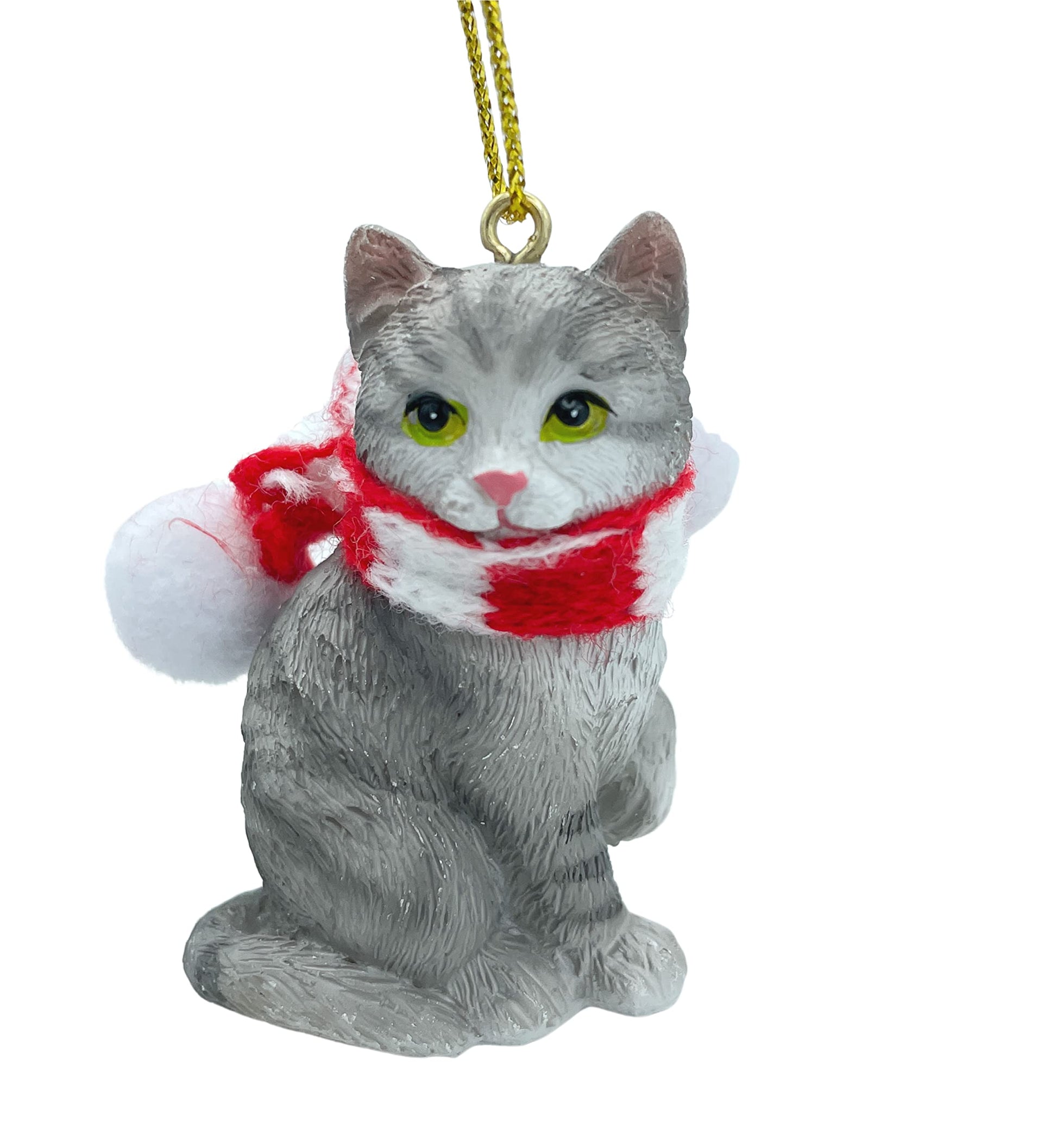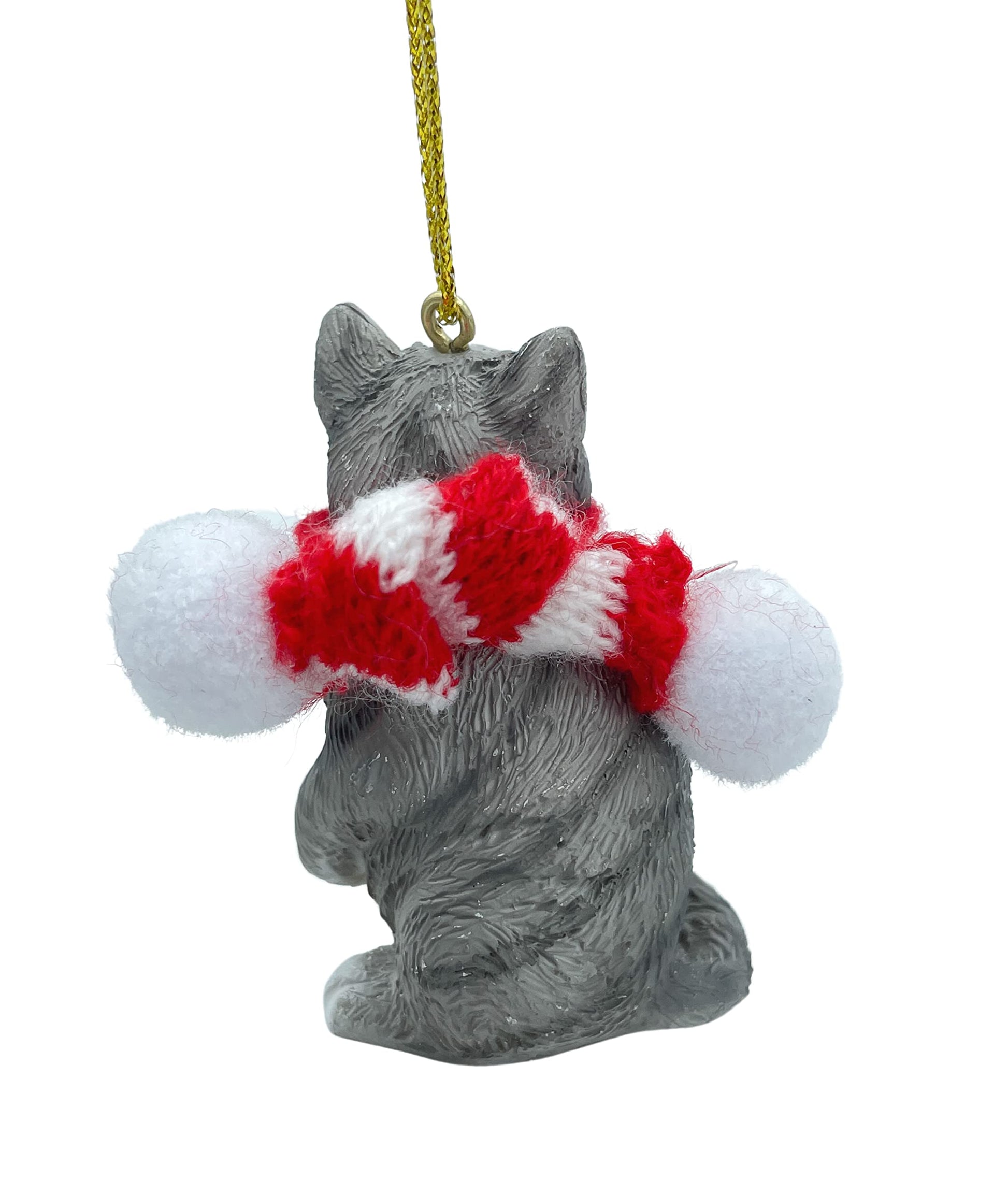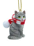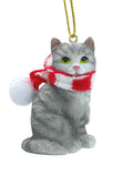 Gray Sliver Tabby Shorthair Kitty Cat Christmas Tree Ornament Cat Lover Gifts with Candy Cane Scarf