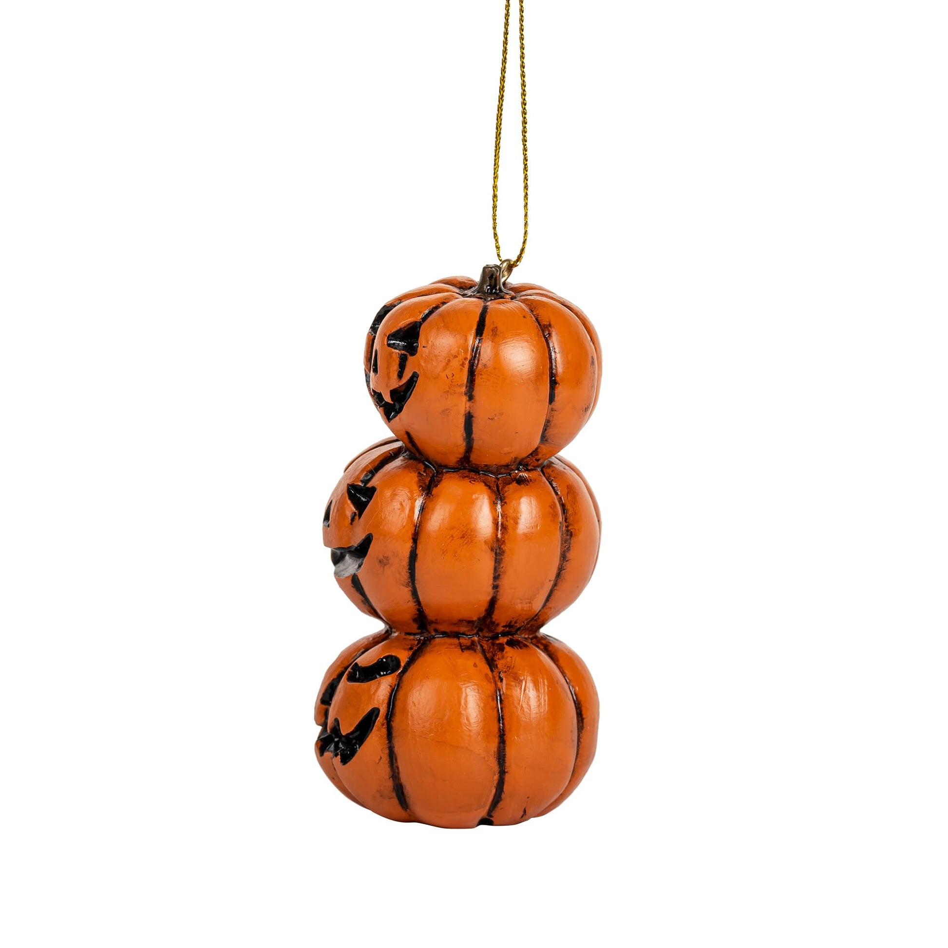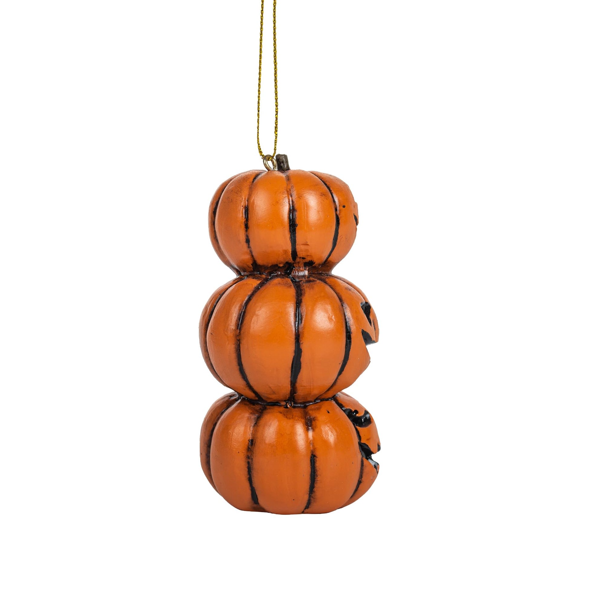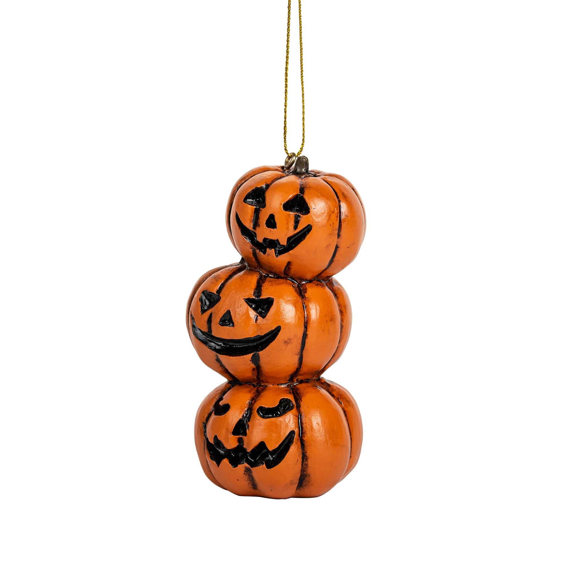 Details: Elevate your Halloween spirit with our Stack of Jack o' Lantern Pumpkin Ornaments. This enchanting set brings the charm of pumpkin patches to your holiday decor, creating a whimsical and festive atmosphere. Size 3 1/2 inches in height by 1 5/8 inches in width