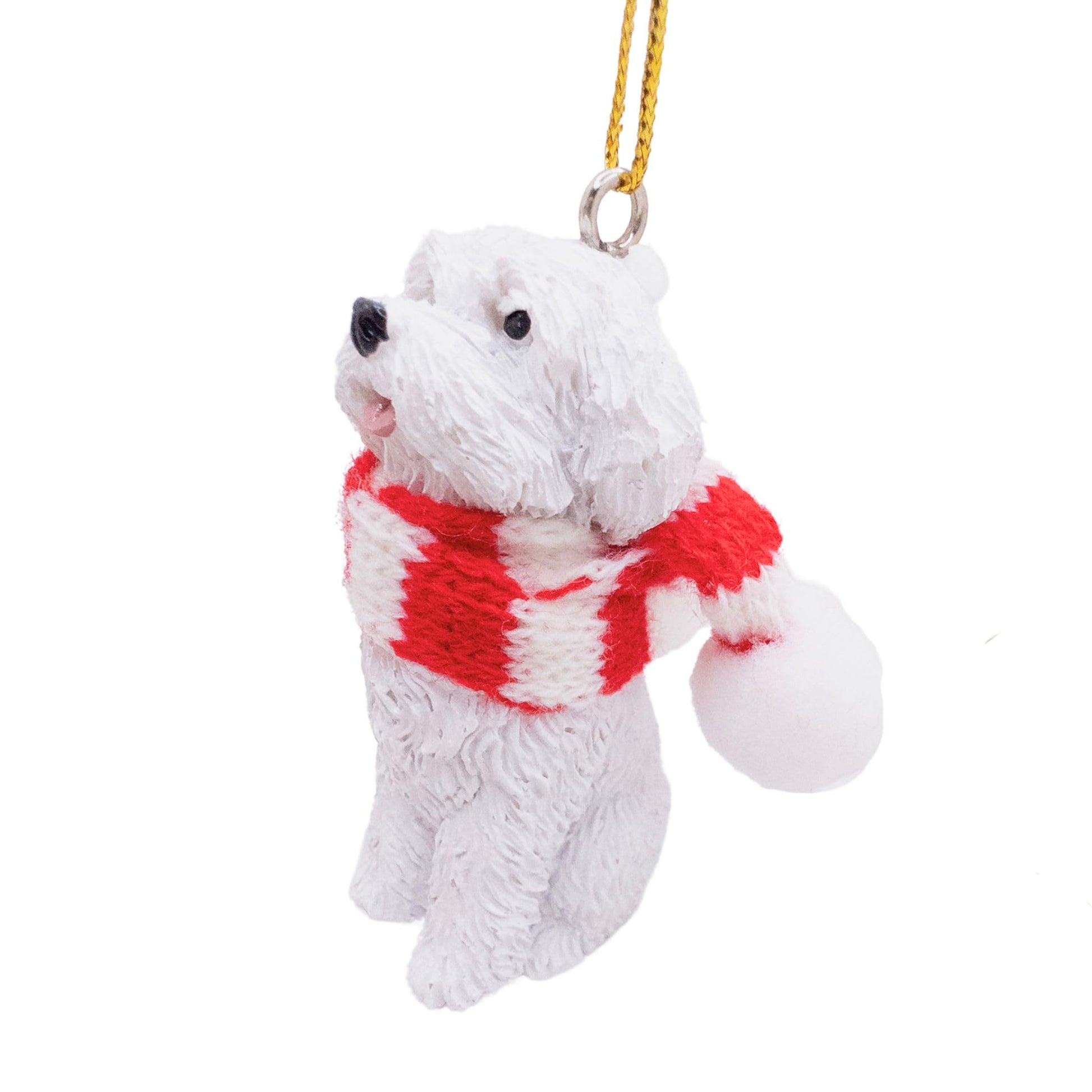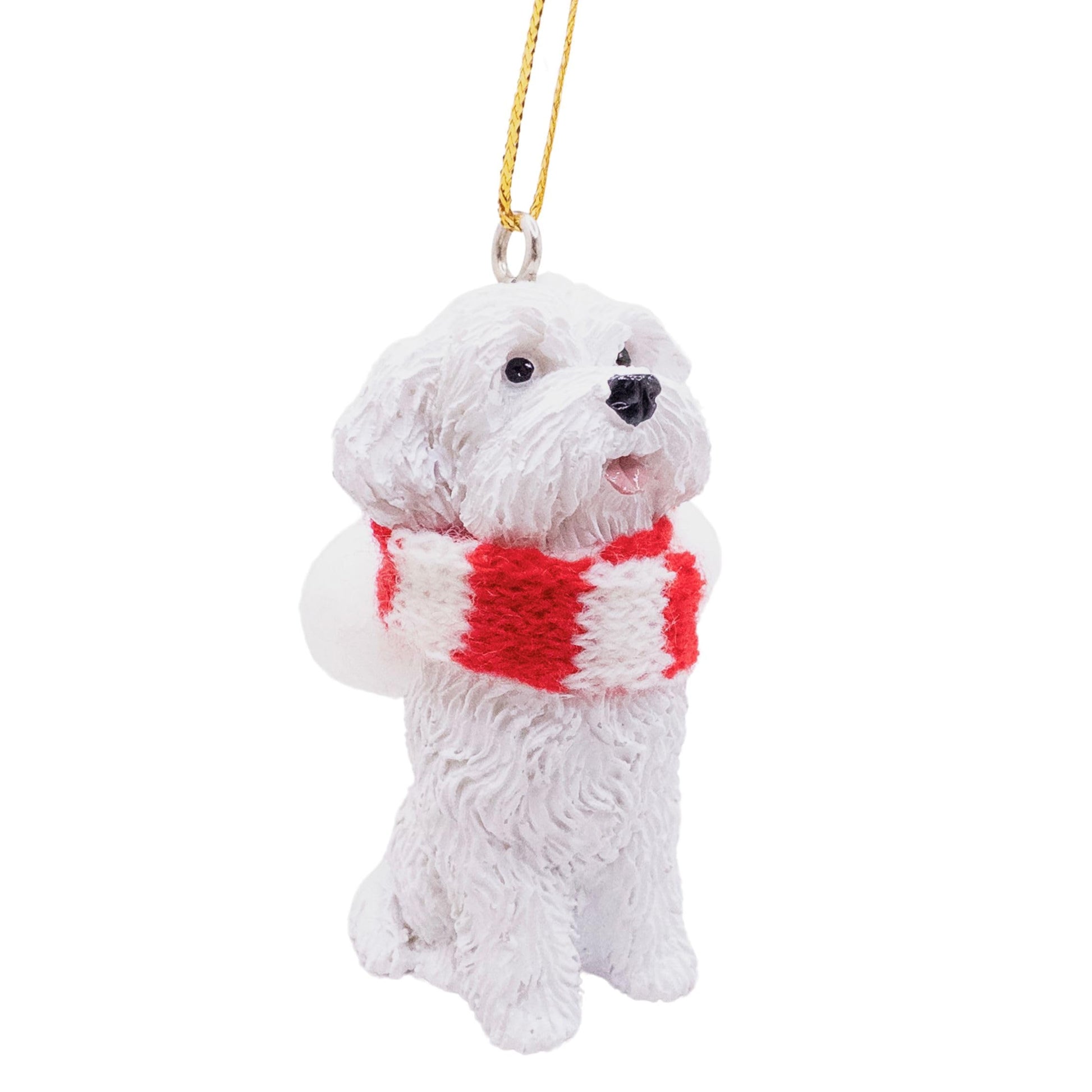 Maltese Dog Lover Christmas Tree Ornament with Candy Cane Scarf