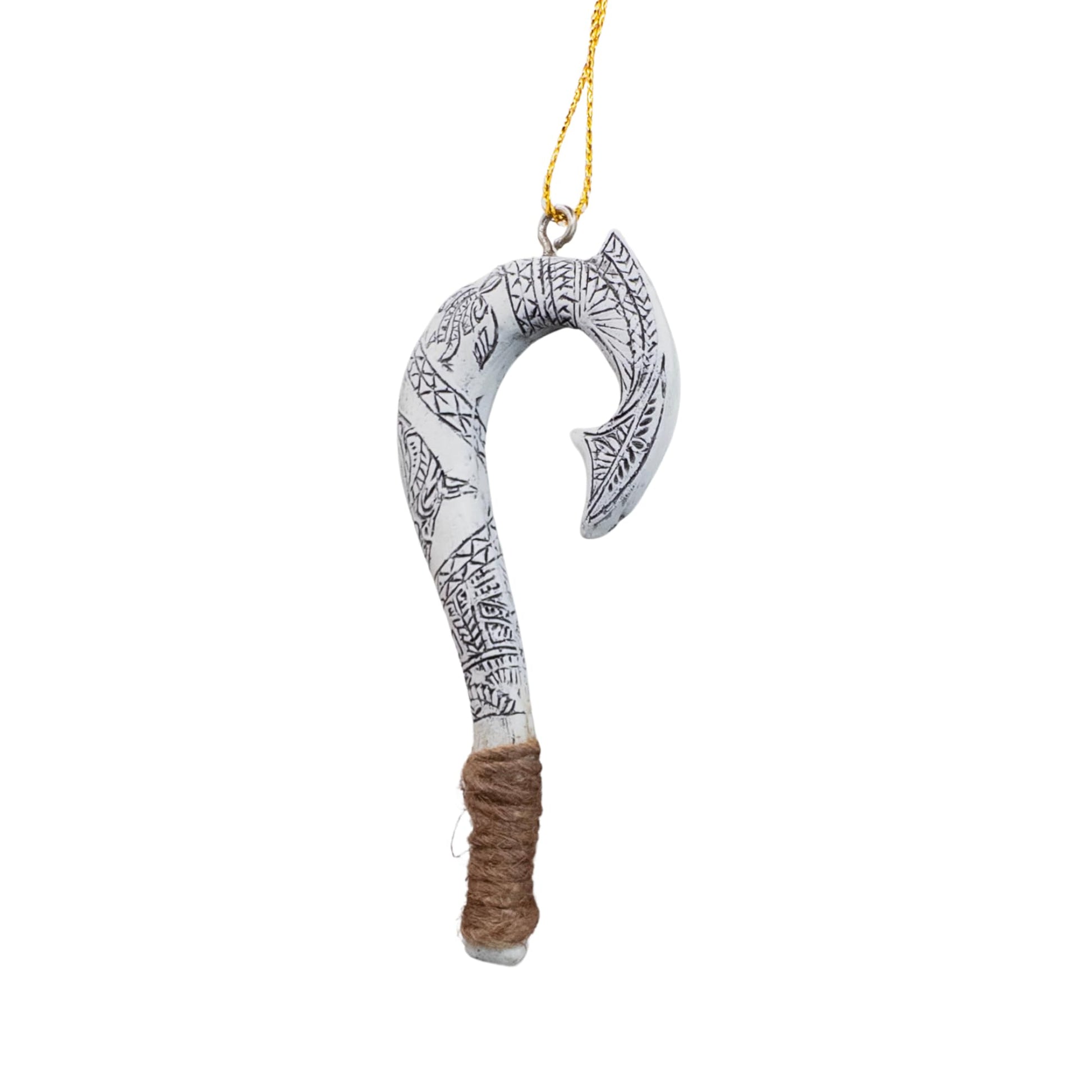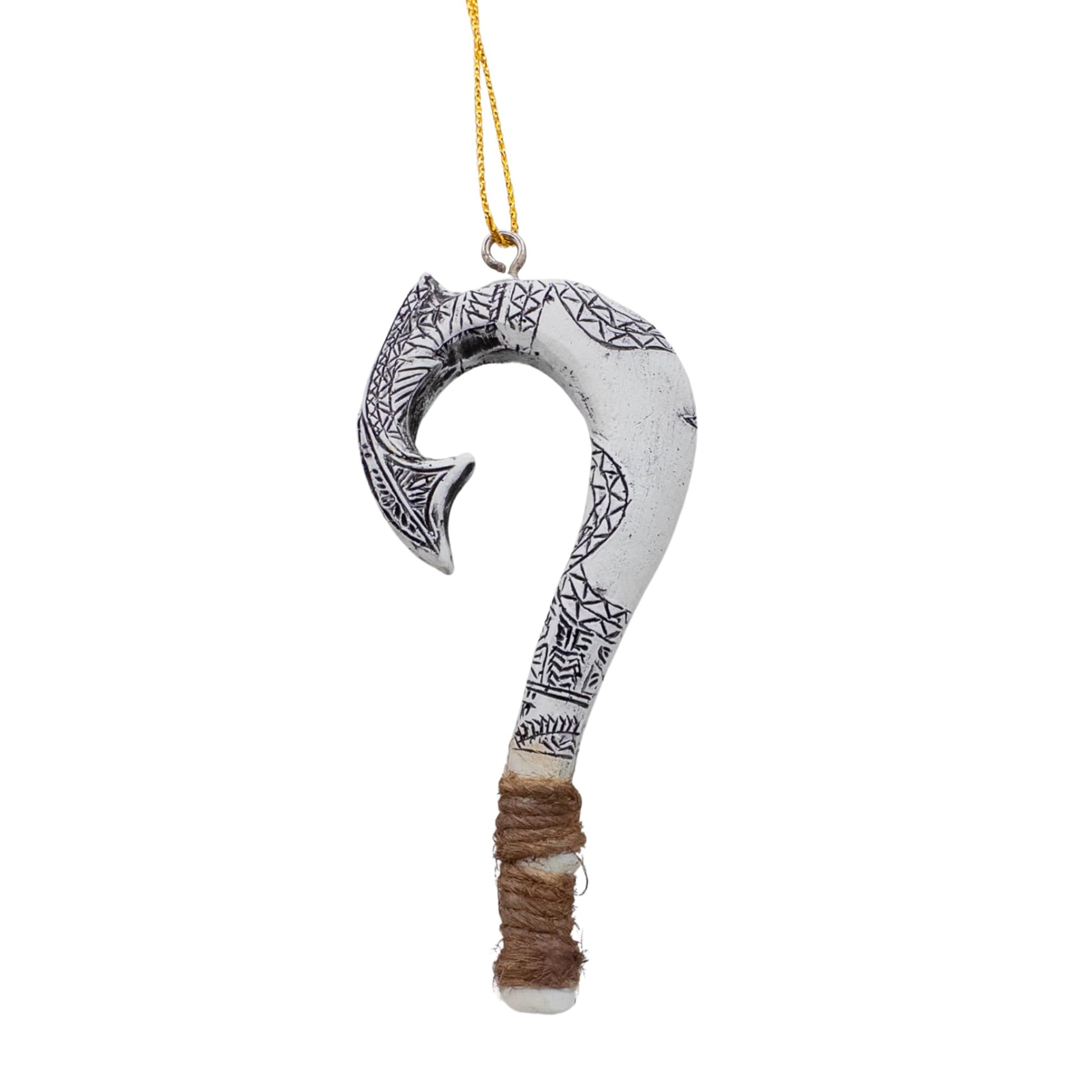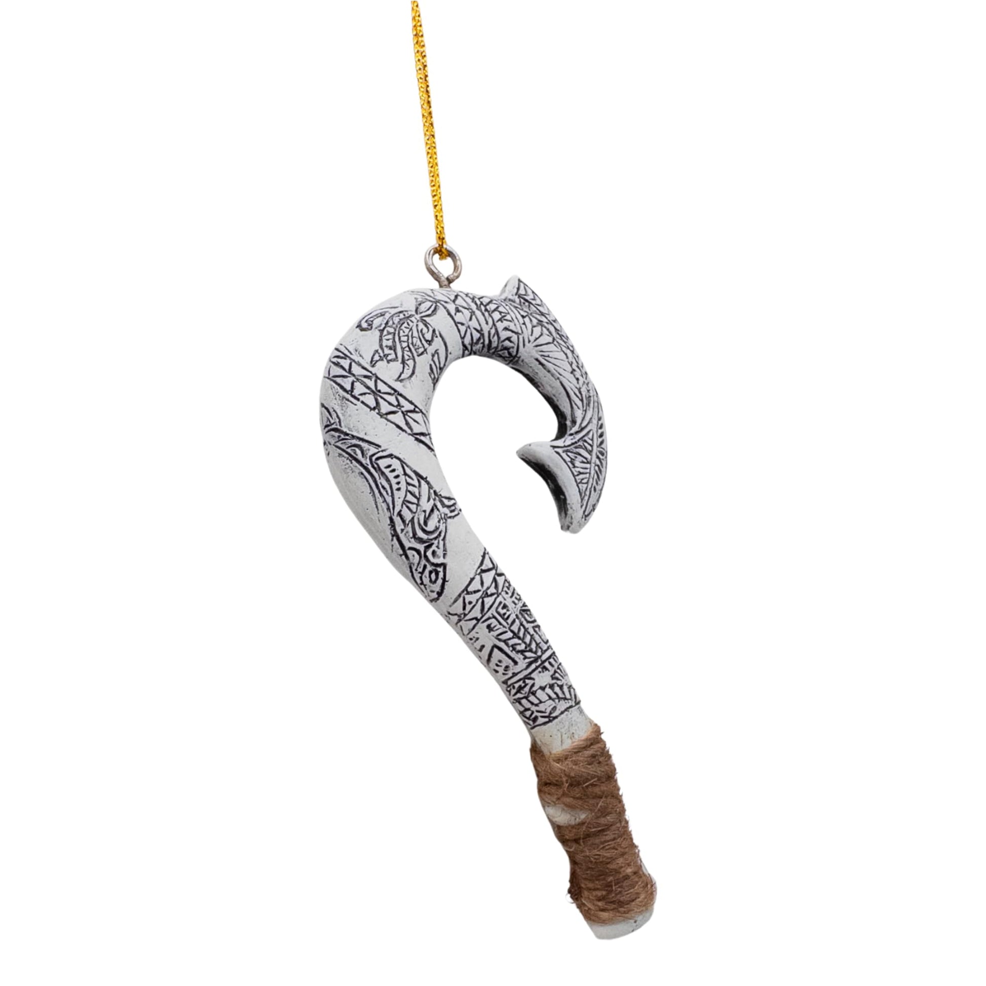 Details: Celebrate the spirit of Hawaii with this Maui Demigod Fish Hook Christmas Tree Ornament! Inspired by the legendary demigod Maui, this ornament brings a touch of Polynesian myth and tropical charm to your holiday decor. Featuring an intricately designed fish hook symbol, it captures the strength and adventure of Hawaiian lore. Made from durable, lightweight resin materials, it’s easy to hang and designed to last for many holiday seasons. Perfect for island lovers, Hawaiian culture enthusiasts, and anyone looking to add a unique, tropical touch to their Christmas tree. A perfect way to honor the Aloha spirit this holiday season! Weight 0.4 ounches, Size in inches 3.62" in height, 1.5" length and 0.25" width