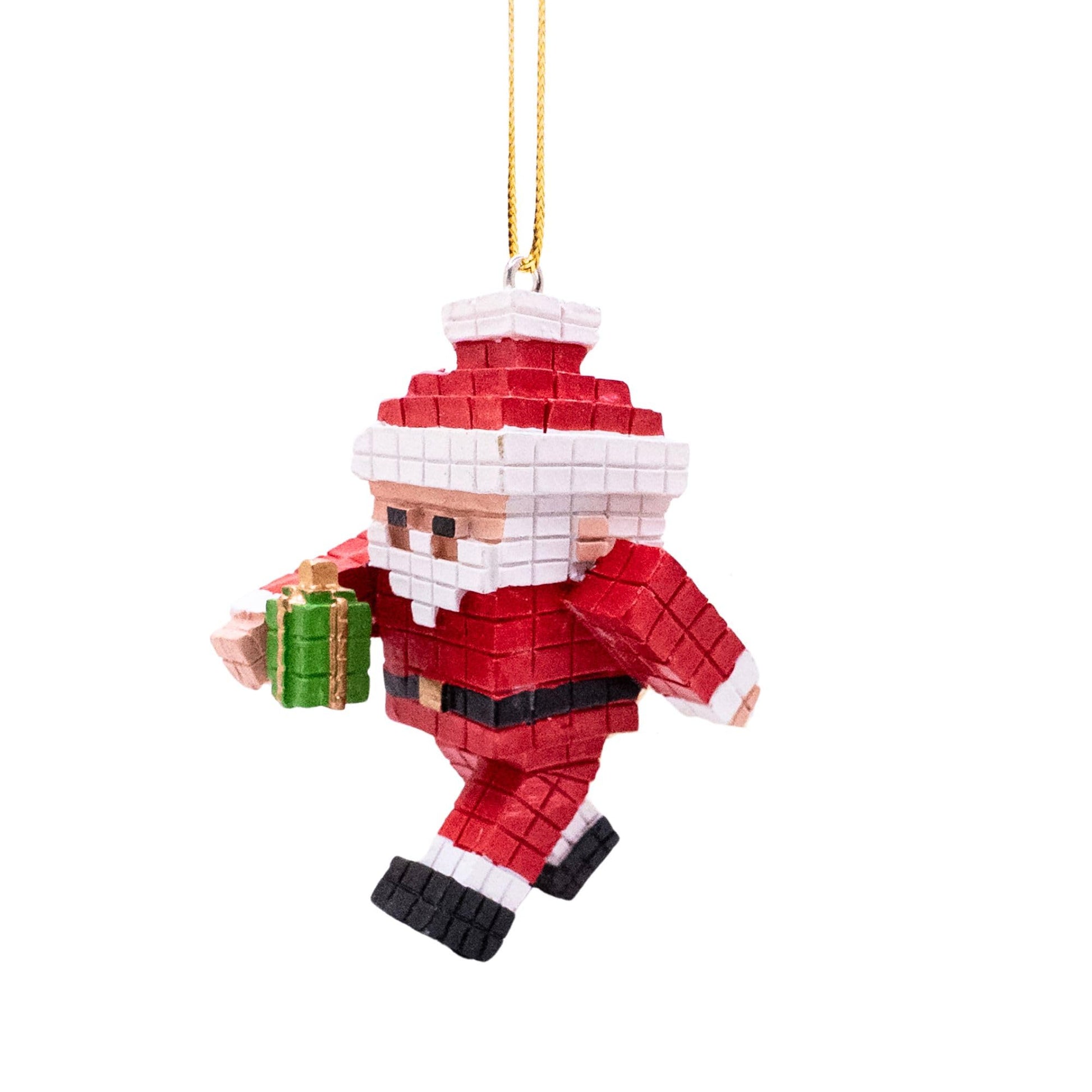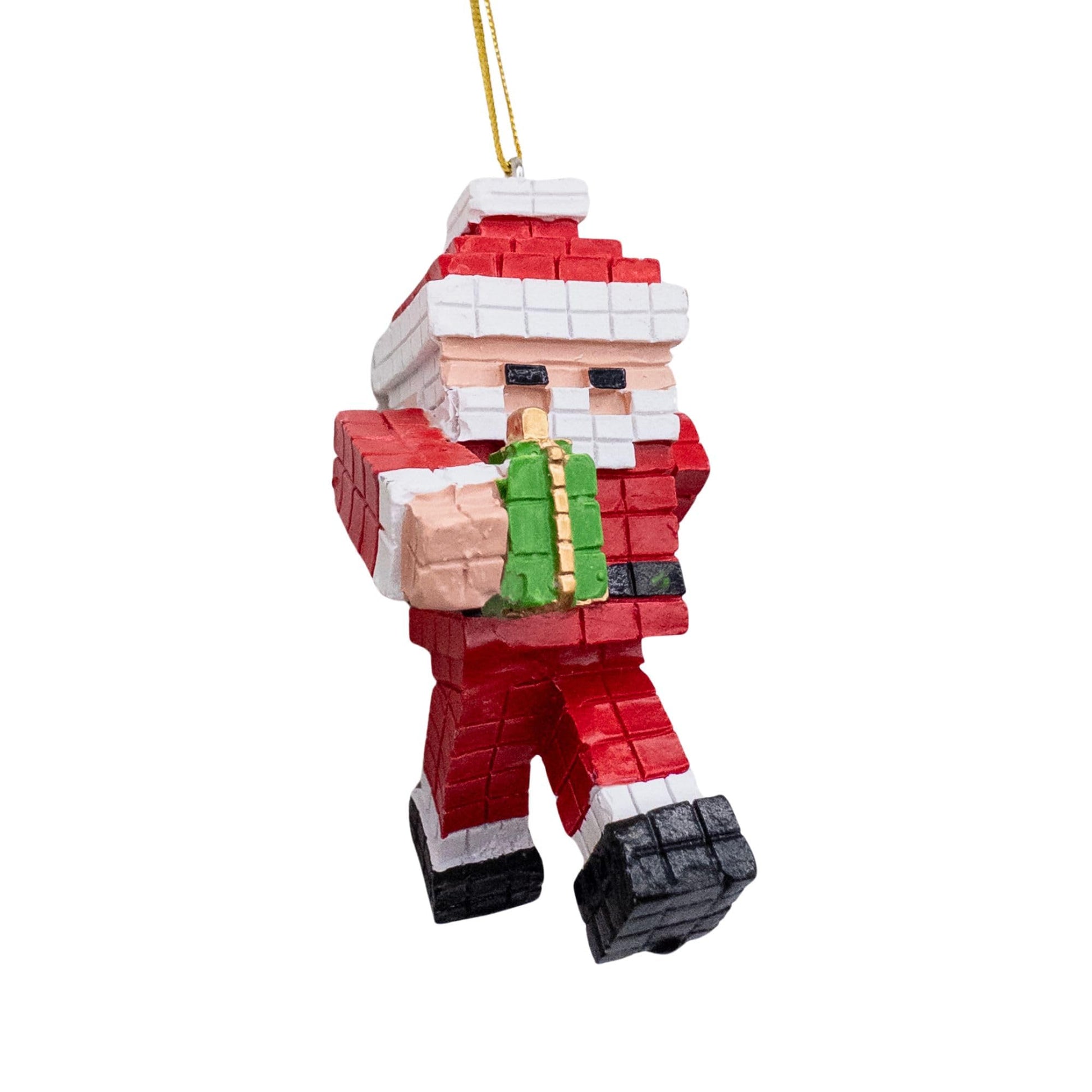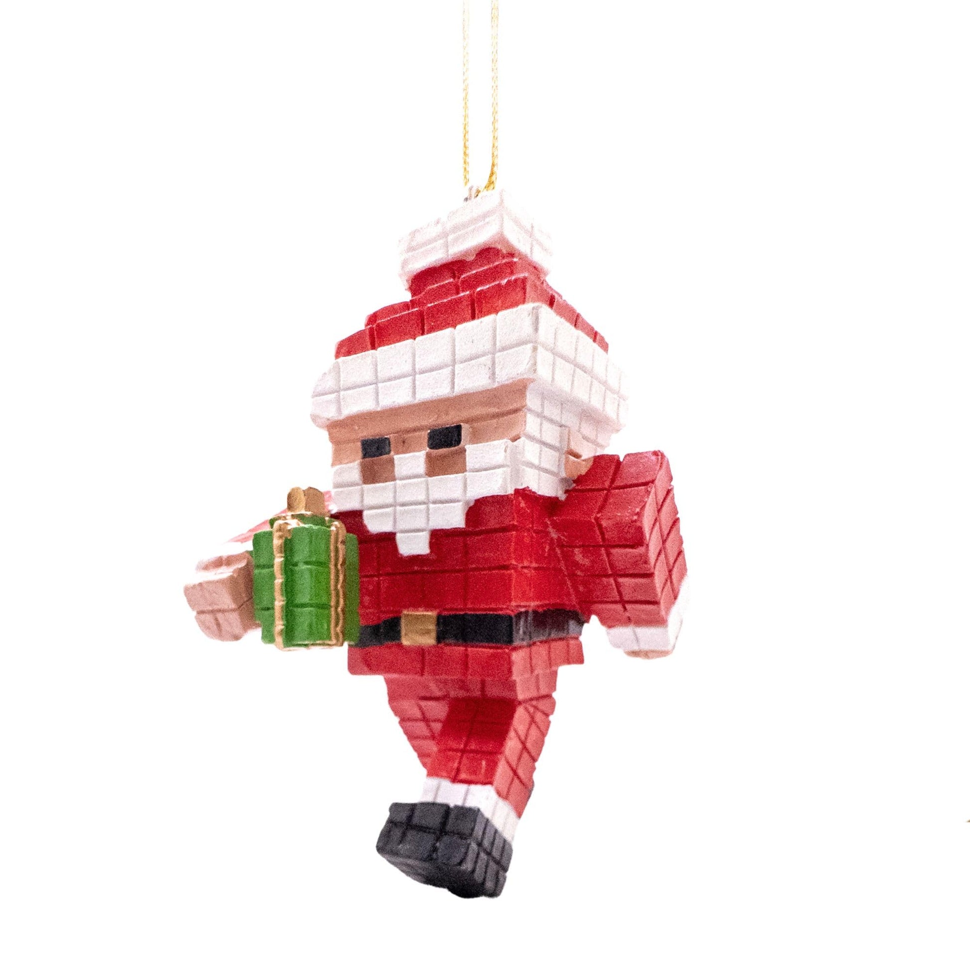 Details: Bring the 80's back to your holiday season with our Pixelated Gamer Santa Claus Christmas Tree Ornament. This unique ornament features Santa Claus in a fun, pixelated design reminiscent of classic retro 80's video games, blending holiday cheer with gaming fun. Crafted with precision and made from high-quality resin materials, this ornament is perfect for gamers and fans of vintage video games. Add a touch of retro 80's charm to your Christmas tree and celebrate the fusion of festive tradition and gaming culture. This pixelated Santa is sure to be a standout piece in your holiday décor! Weight is 1.5 ounes, Size in inches 2.87 in height, 2.12 in length 1.5 in width
