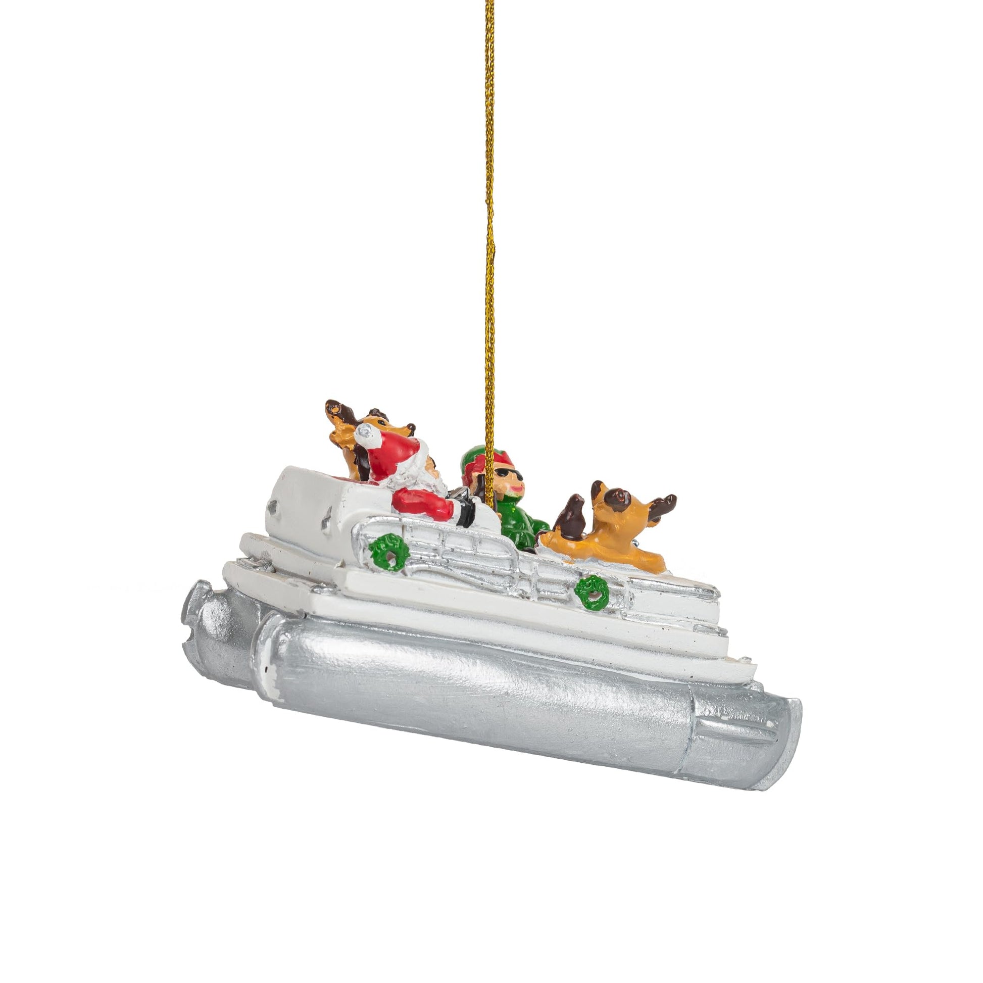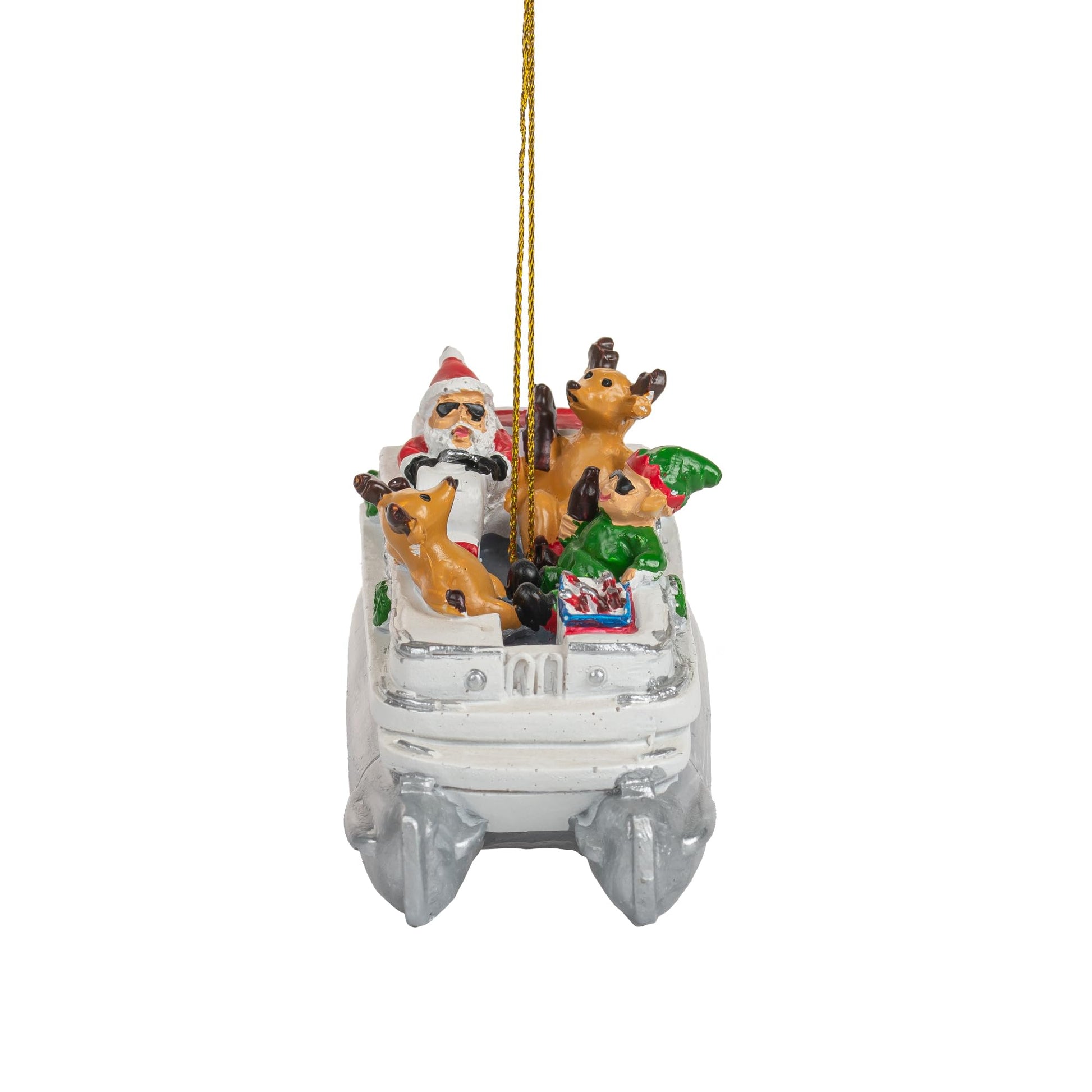 Pontoon Christmas Tree Ornmaent Santa Reindeer Elf in Party Boat