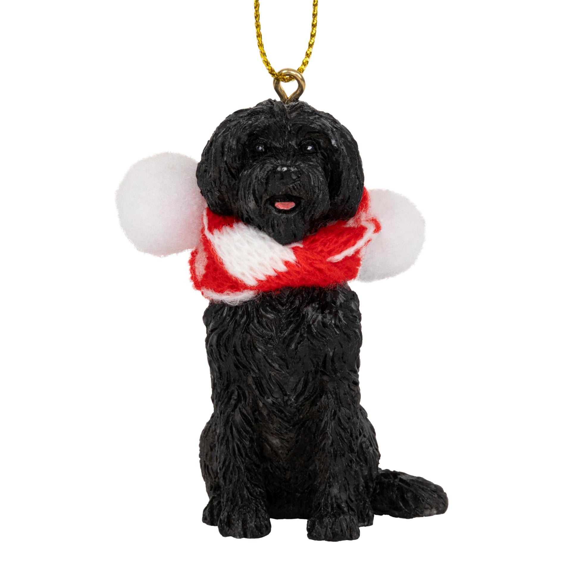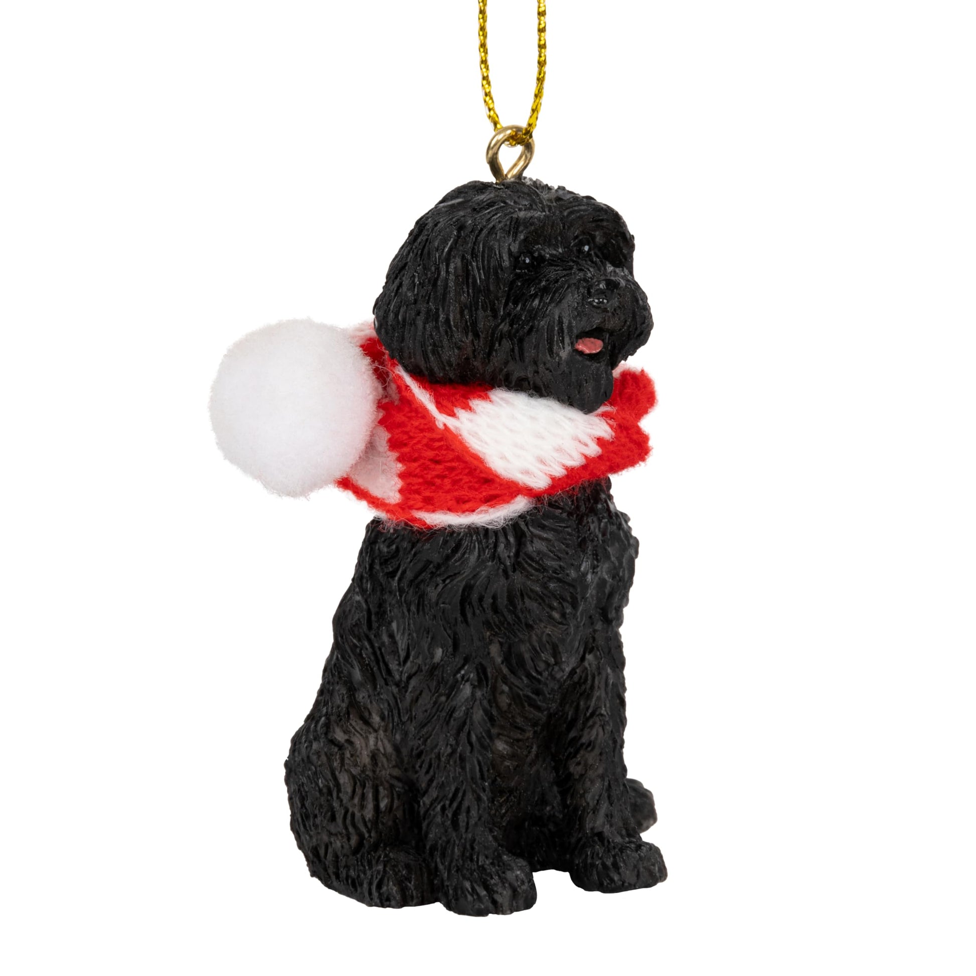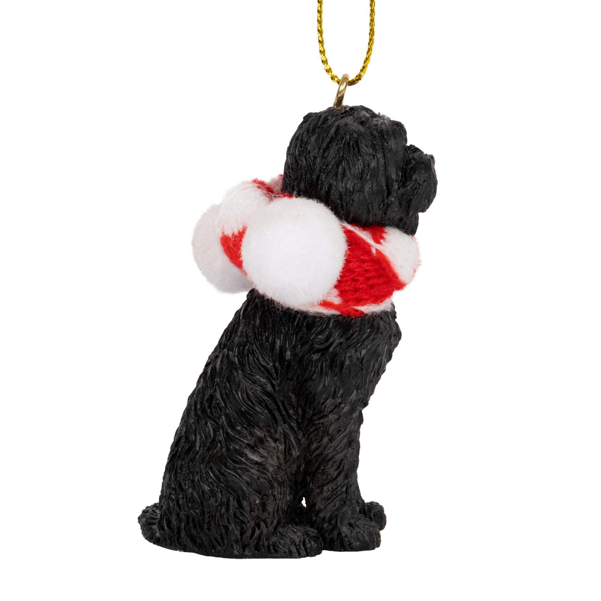 Portuguese Water Dog Black Christmas Tree Ornament Fabric Candy Cane Scarf