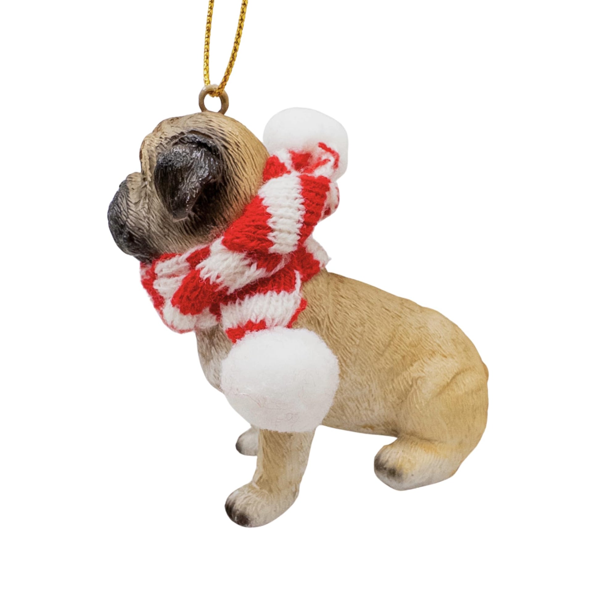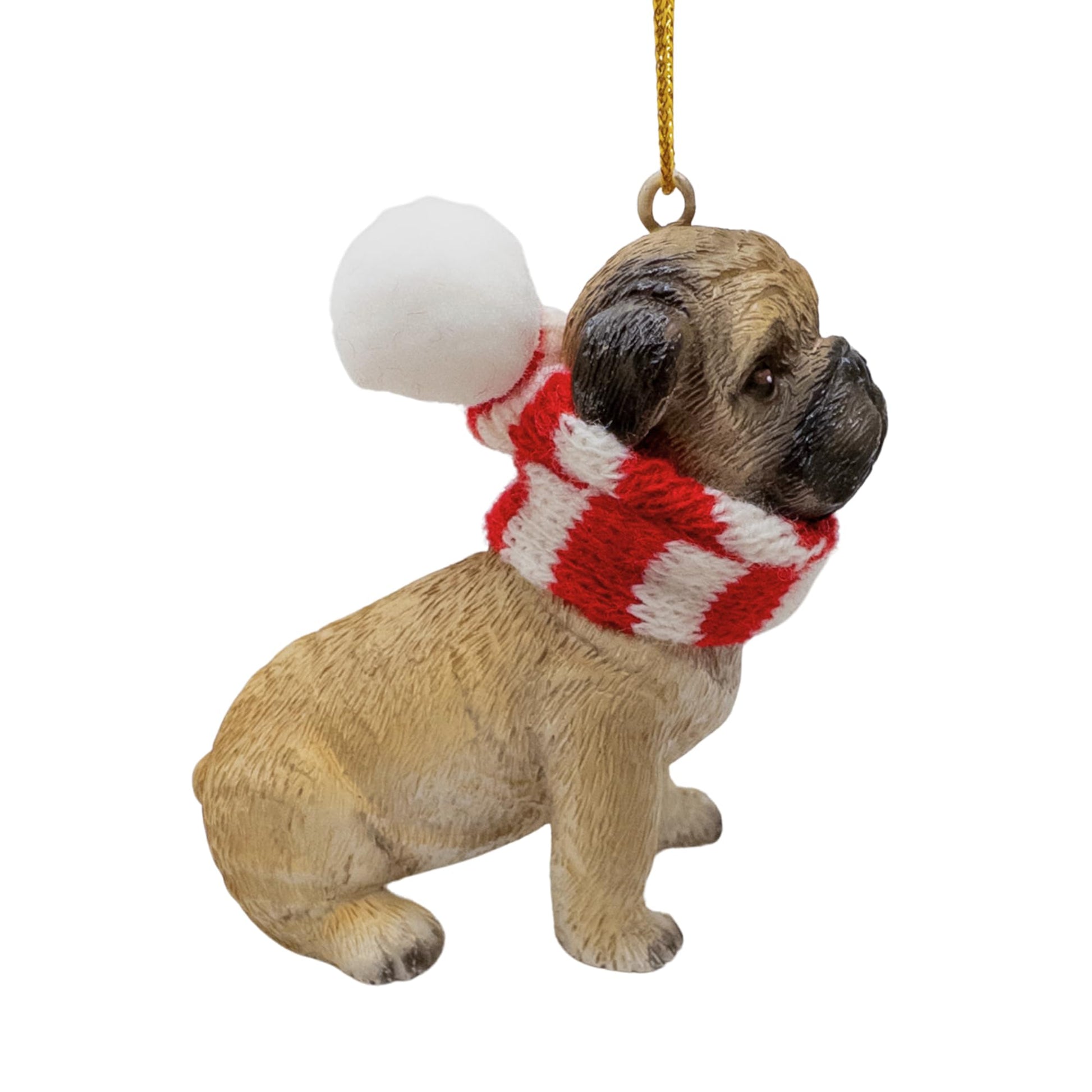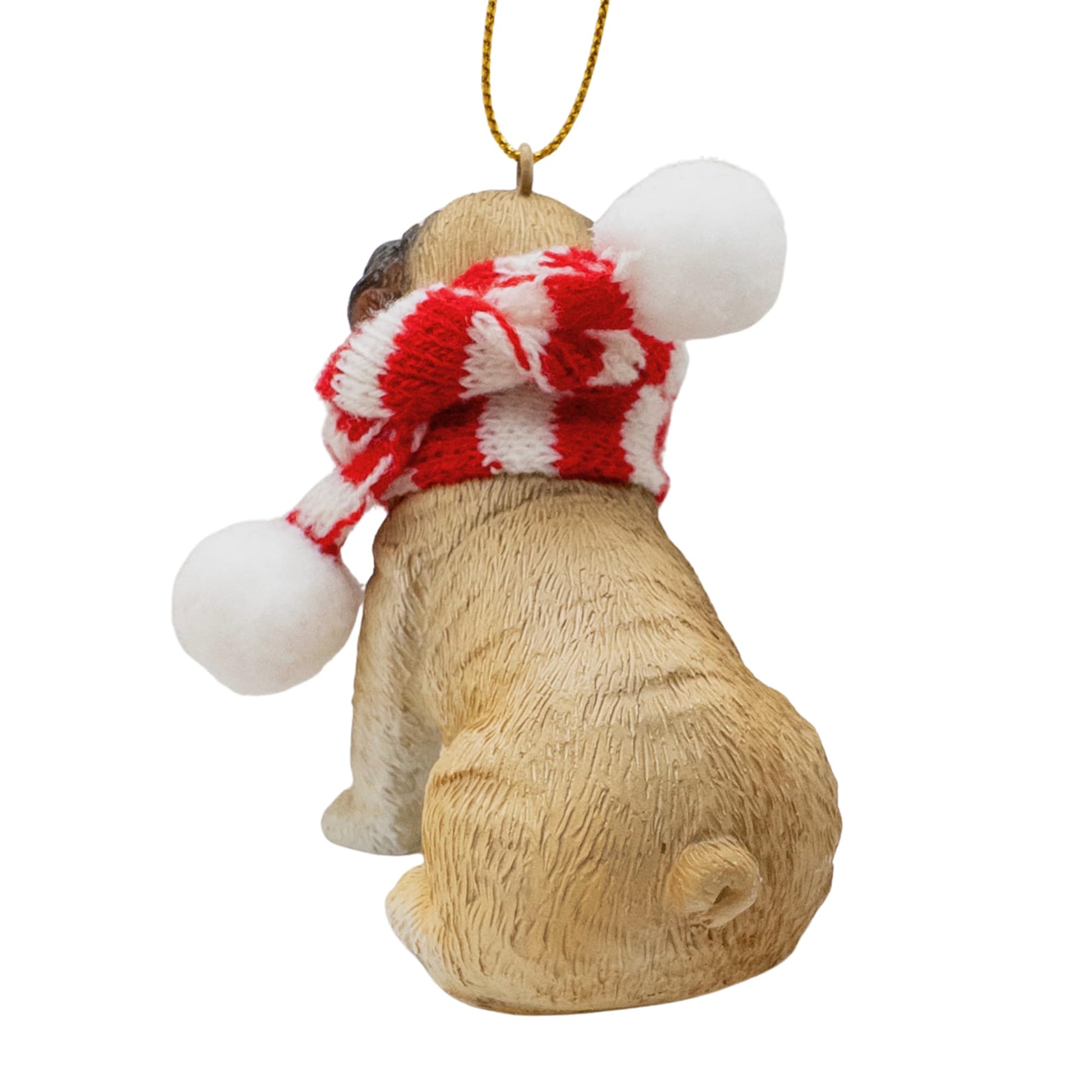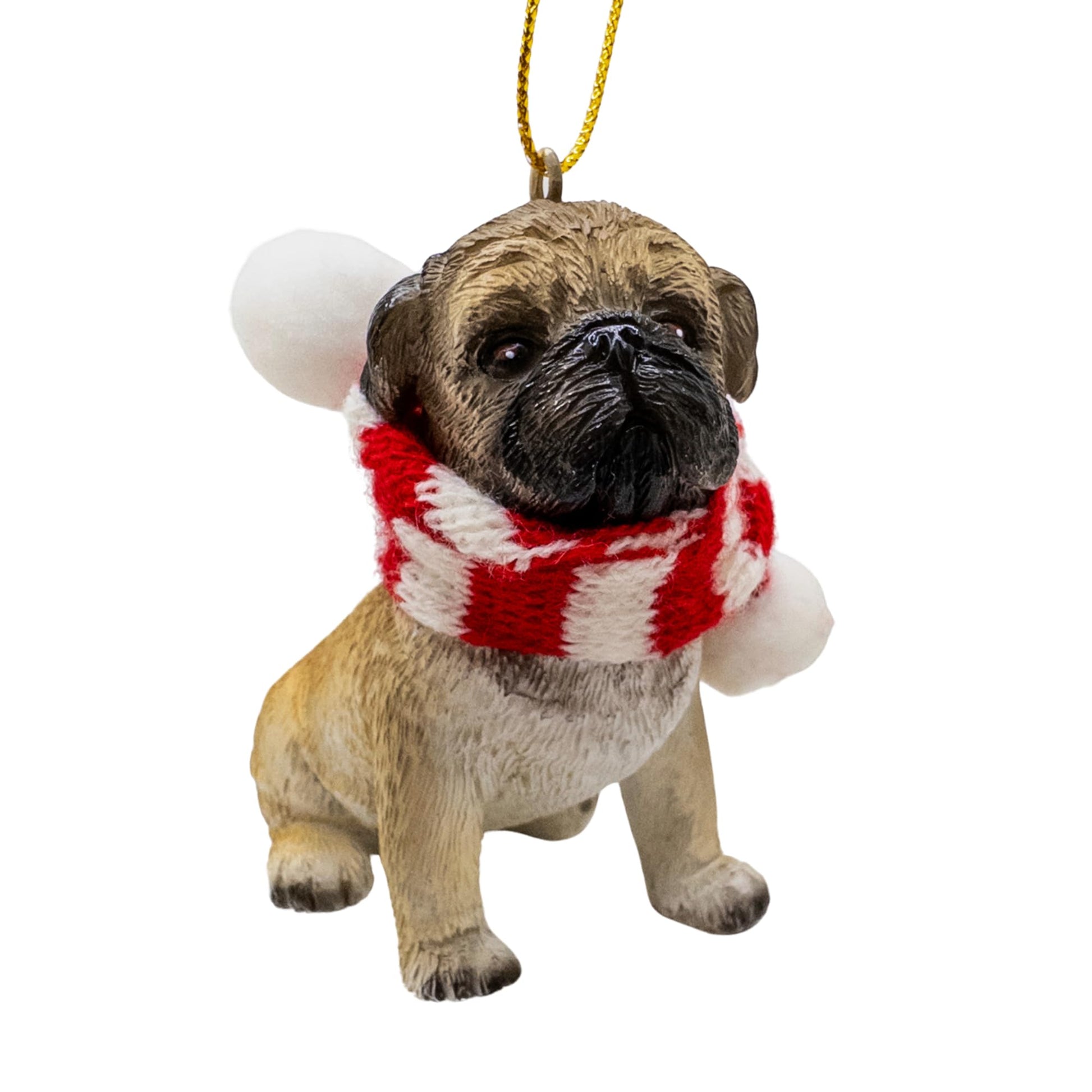Pug Dog Puppy with Candy Cane Scarf Christmas Tree Ornament