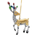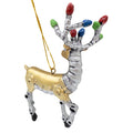 Details: Combine holiday tradition with this unique Robot Reindeer Christmas Ornament. Designed with intricate details and a sleek gold metallic finish, this ornament brings a modern twist to your festive decorations. Perfect for tech enthusiasts and those who love innovative holiday décor, this robot reindeer adds a playful and contemporary touch to any Christmas tree. Made from durable resin materials, it's built to last for many seasons. Weight 1.2 ounces Size in inches 3.87 in height, 2.25 length, 1.87 width