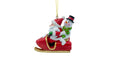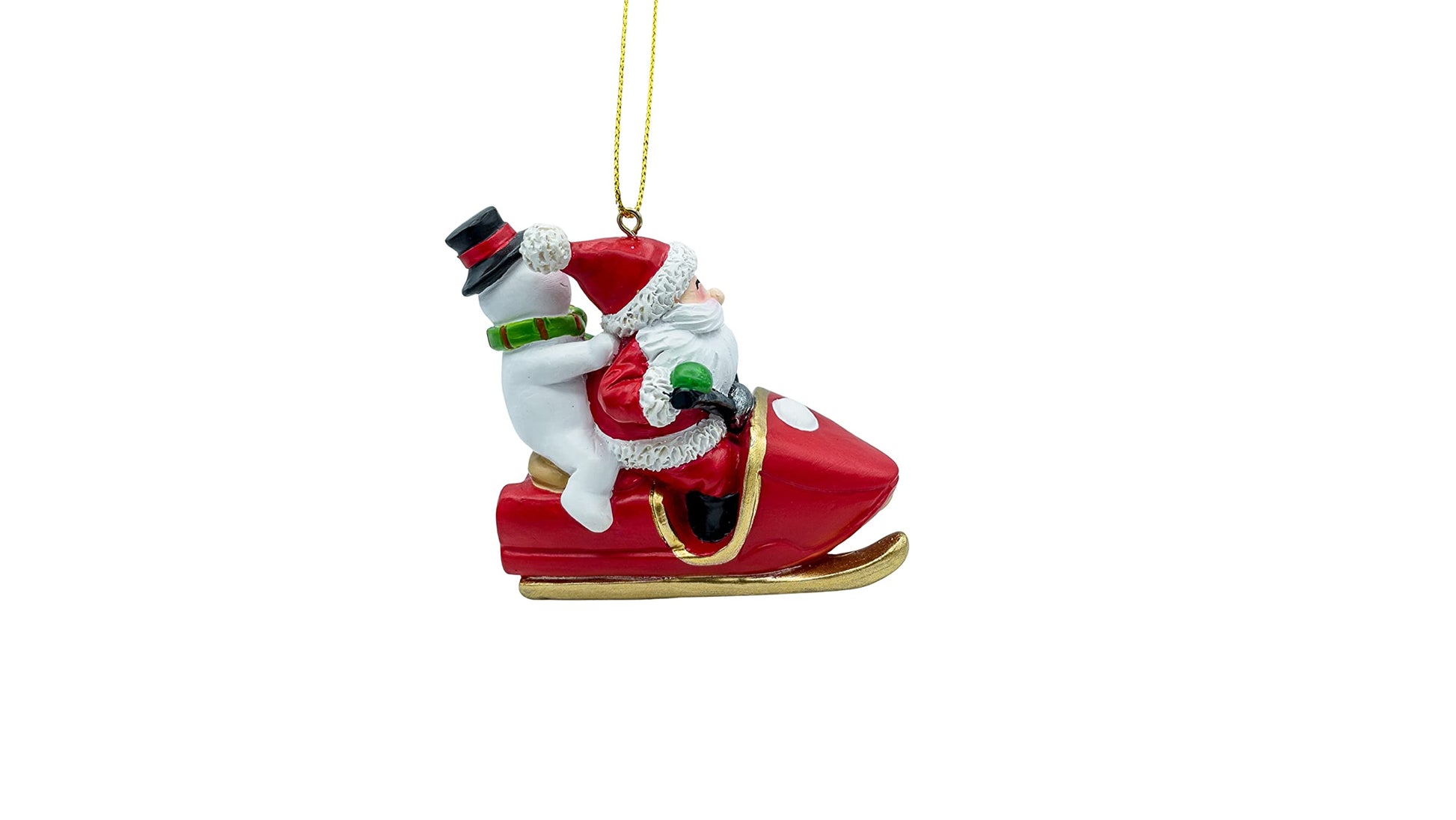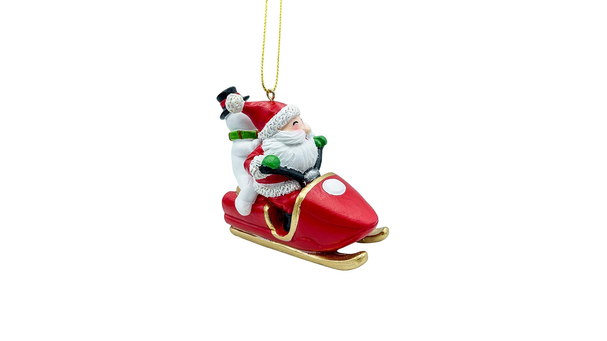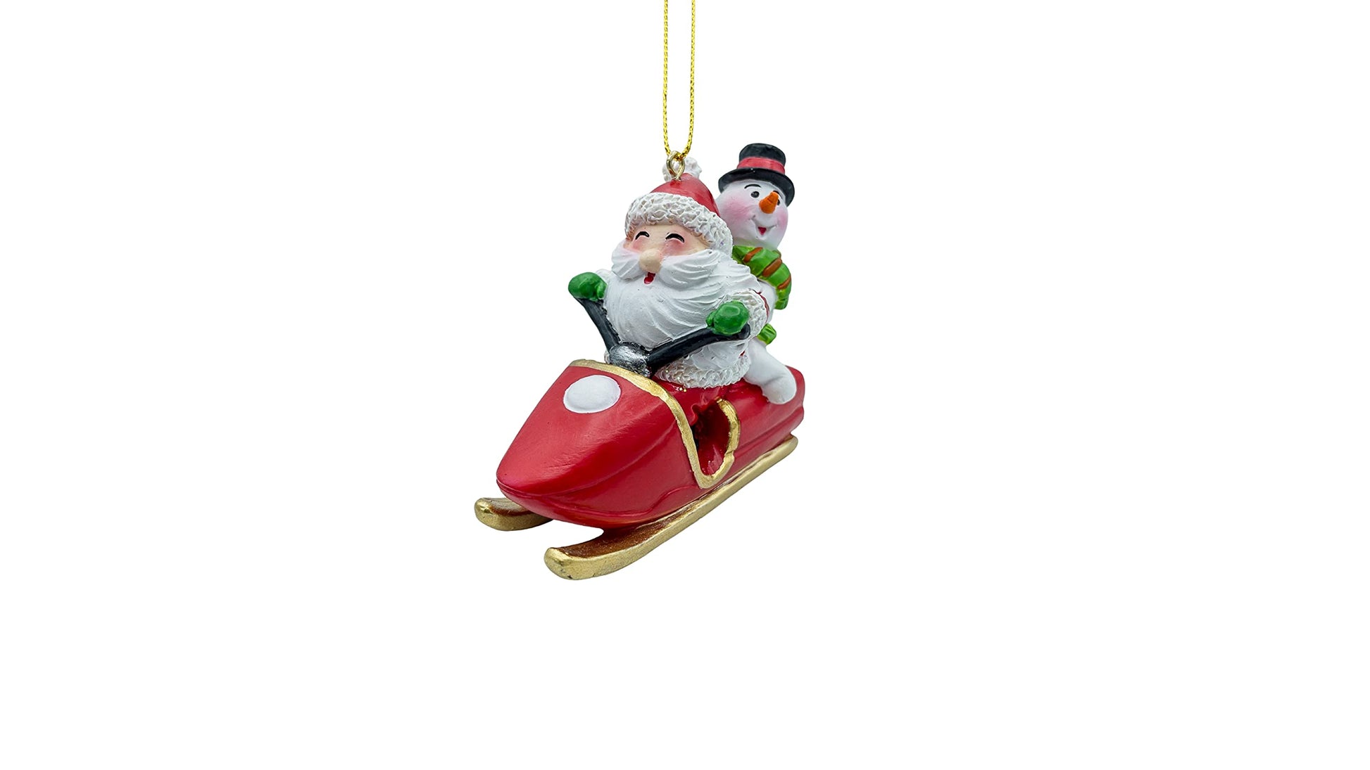 Santa Claus Riding A Gold Ski Red Snowmobile Sleigh with Snowman Christmas Tree Hanging Ornament