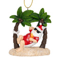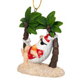Details: Escape to a tropical paradise with our Santa Relaxing in Hammock Christmas Tree Ornament! This delightful decoration brings the spirit of relaxation and holiday cheer together in one scene. Size 3 5/8" inches in height by 3" inches in length.