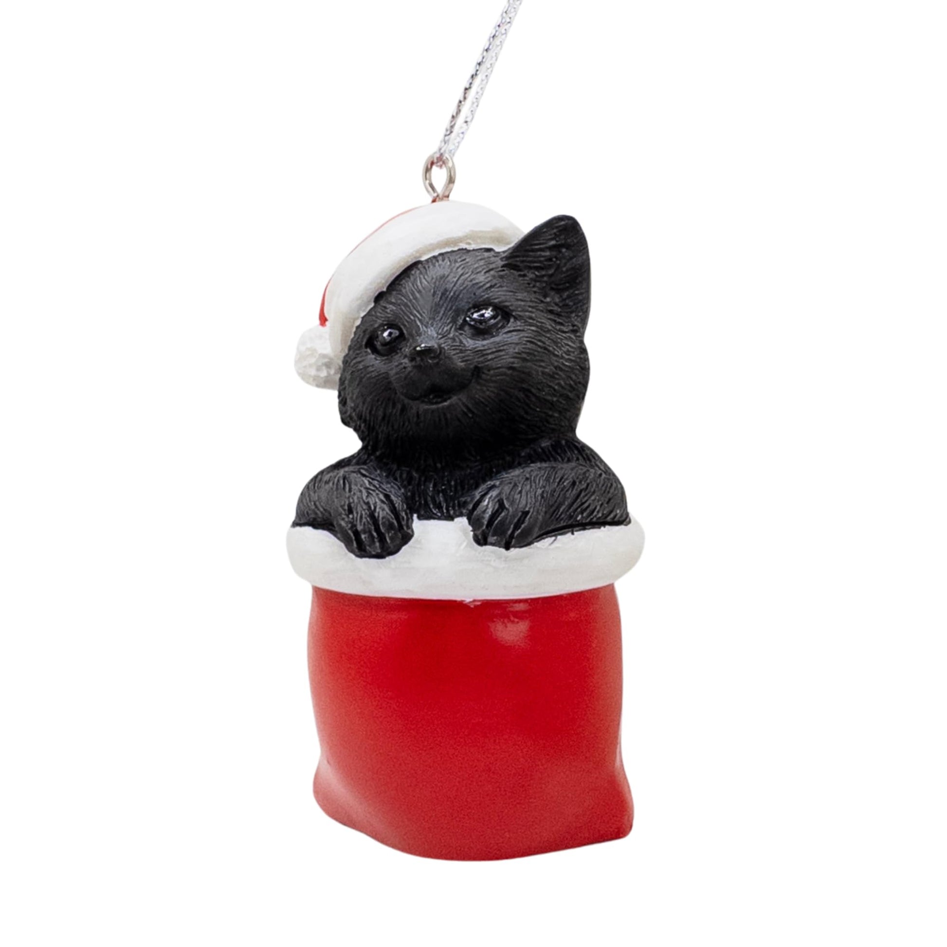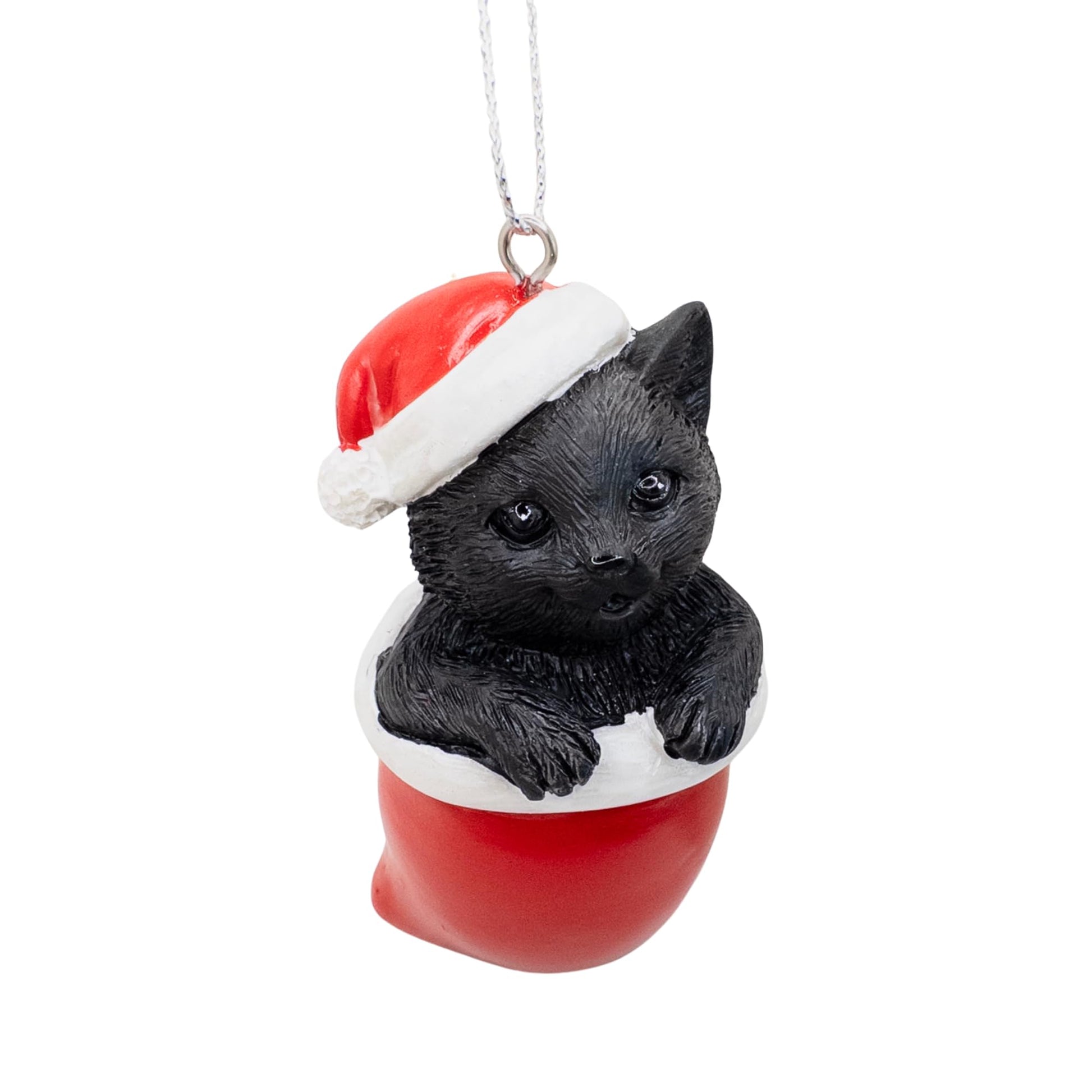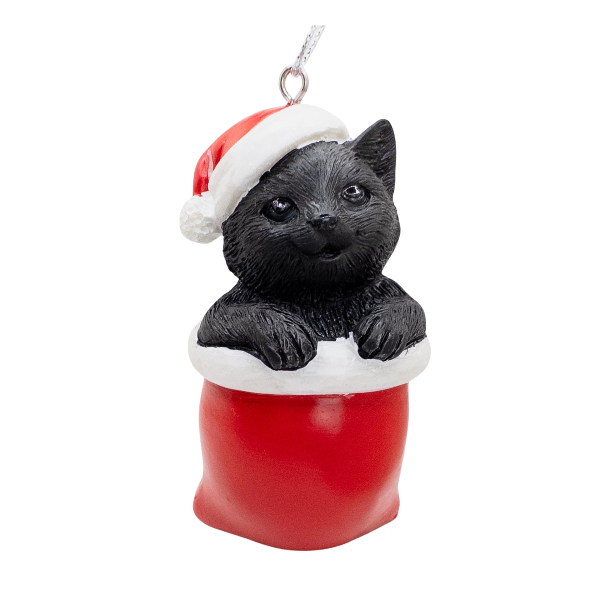 Scary Cute Feral Black Tabby Cat Santa's Bad Gift Christmas Tree Funny Ornament