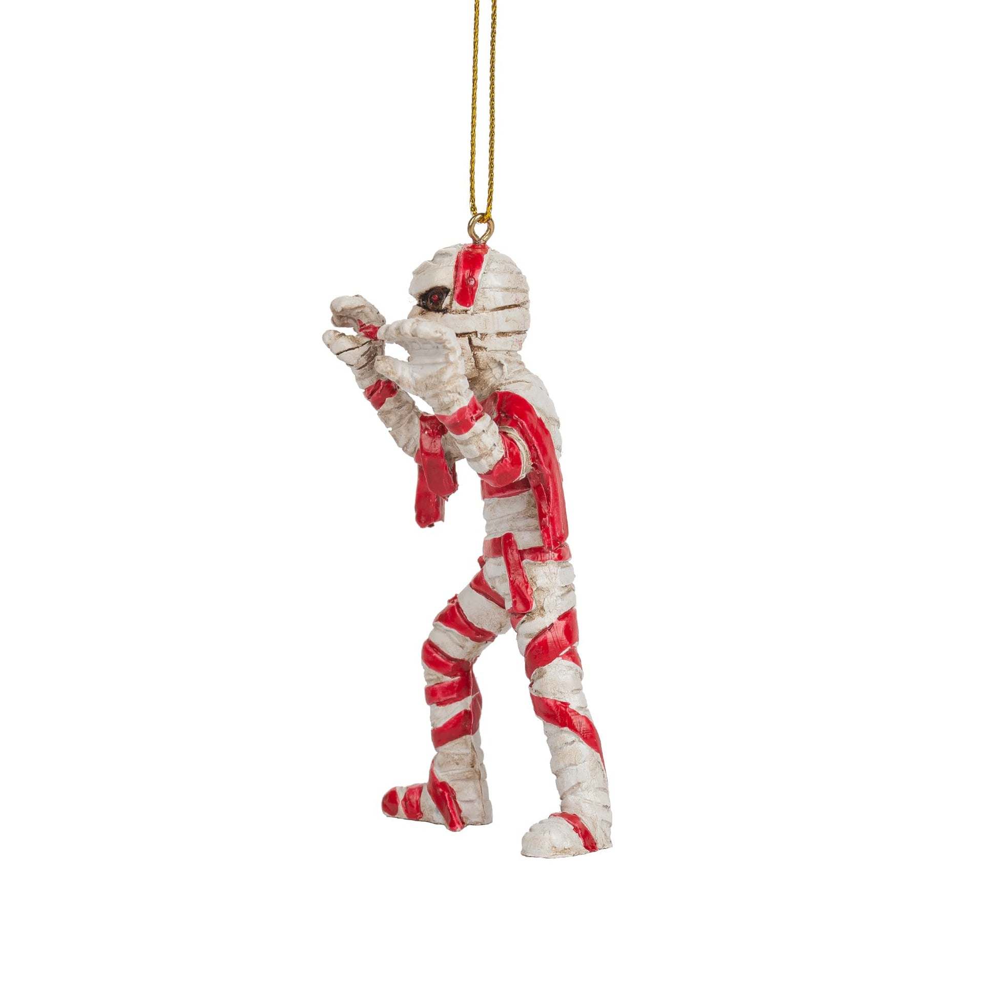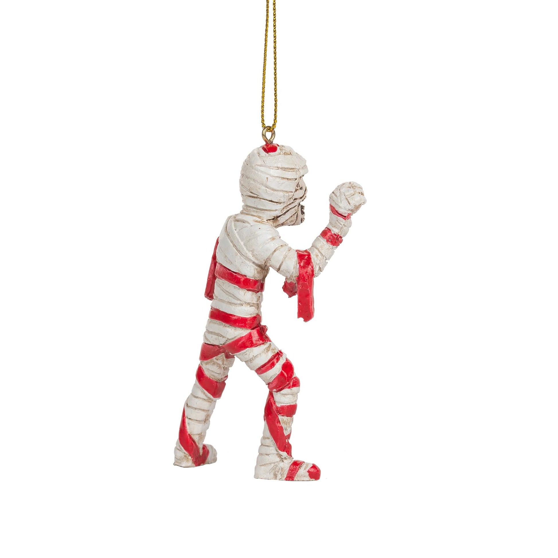- Sweet and Spooky Design: Playful mummy ornament wrapped in candy cane stripes for a delightful holiday twist.