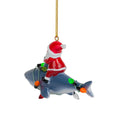 Shark Christmas Tree Ornament with Santa Riding On The Back Covered in Lights