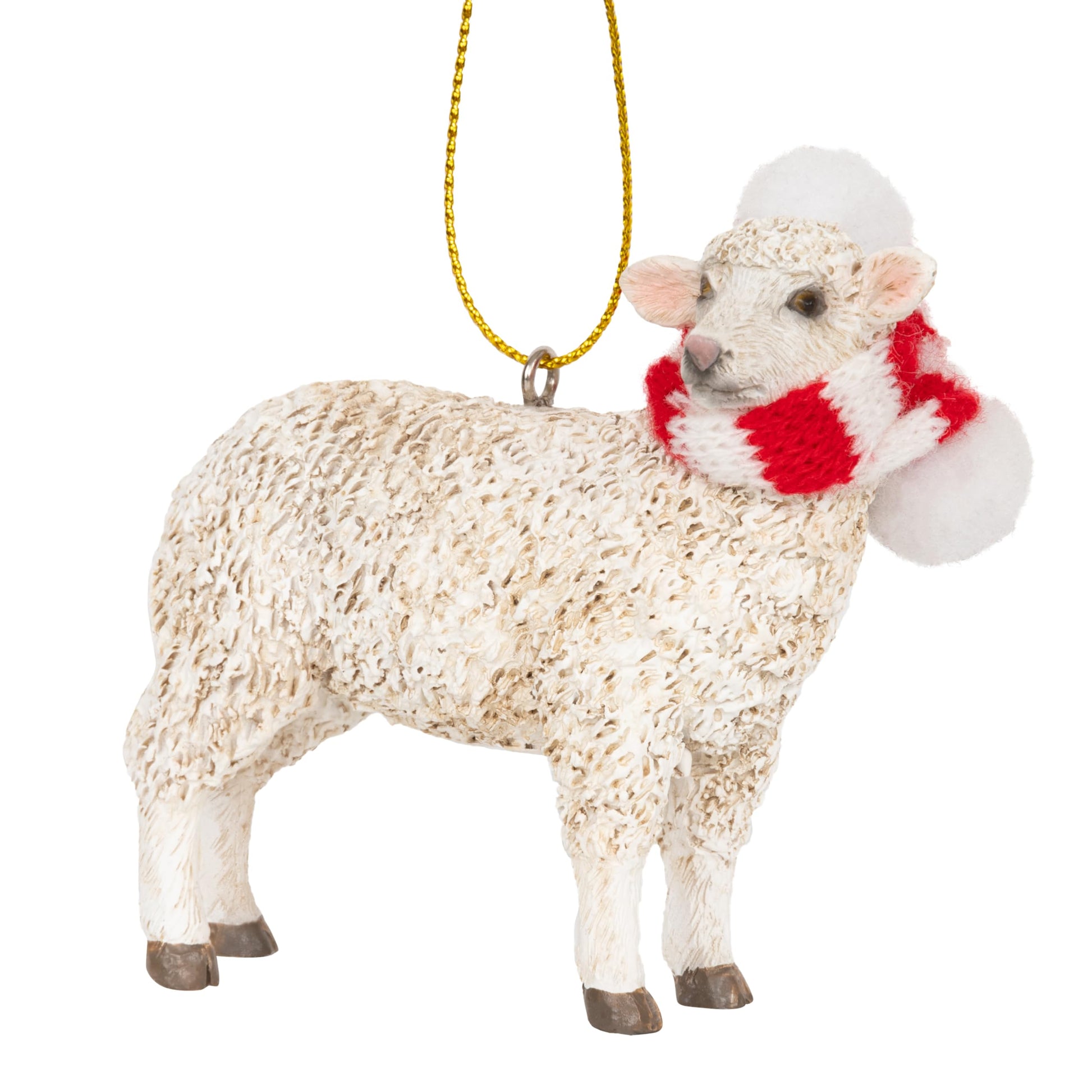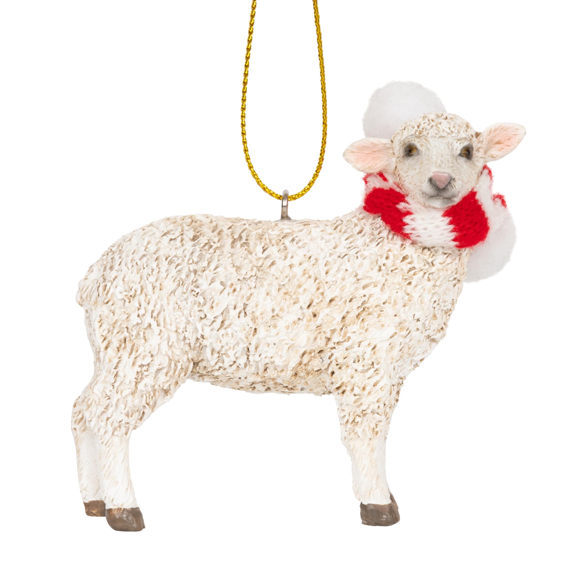 Sheep Farm Animal Nativity Christmas Tree Lamb Ornament with Fabric Candy Cane Scarf