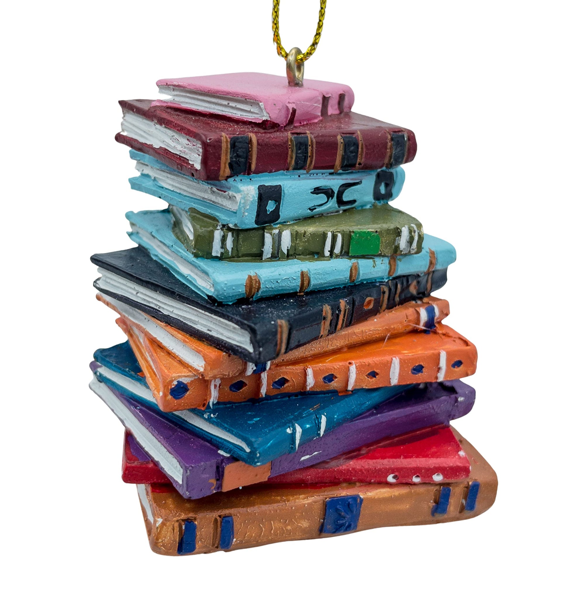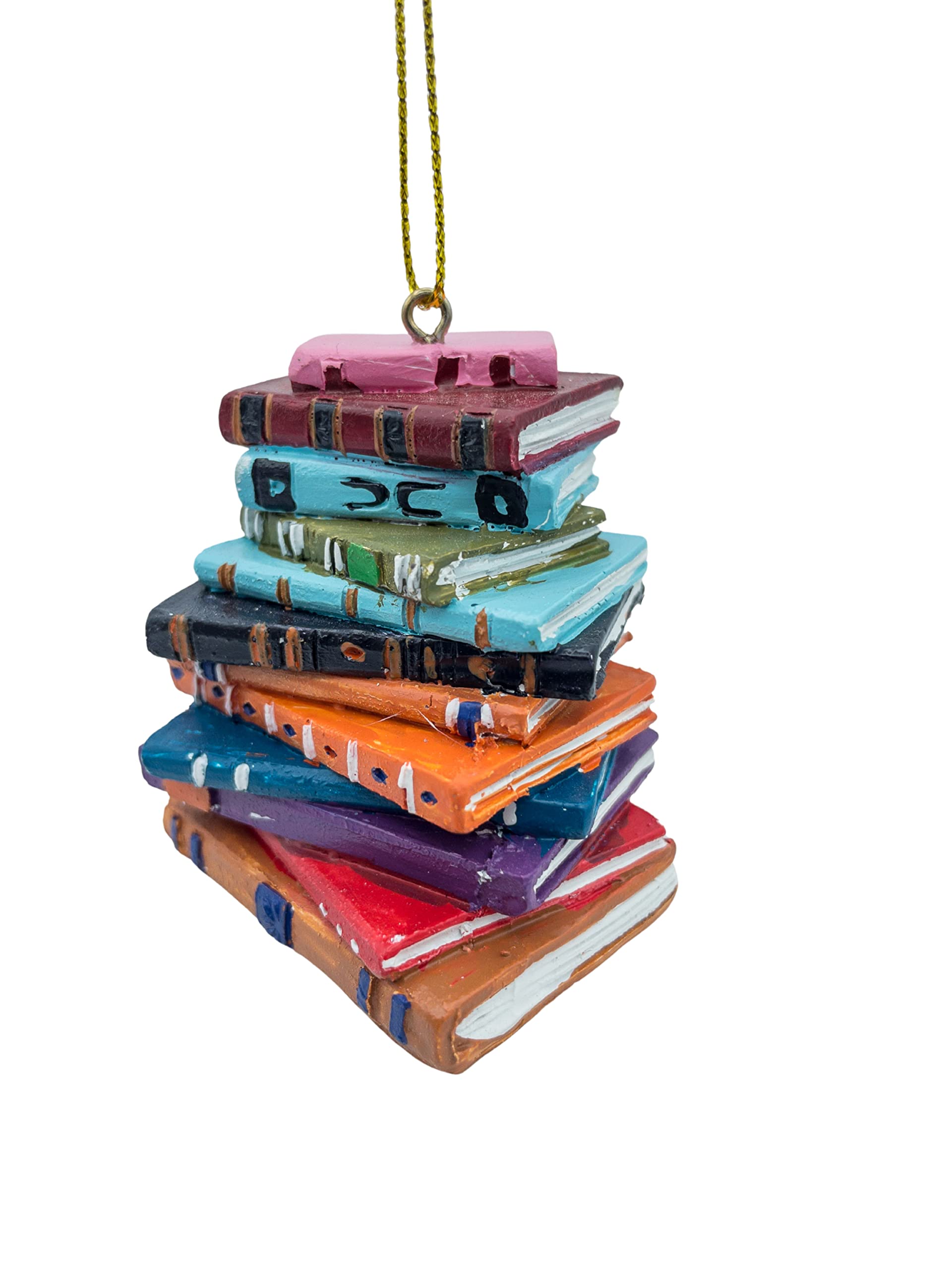 - Book Ornament- This stack of books ornament is perfect for any Christmas tree, book lover, and teacher gift