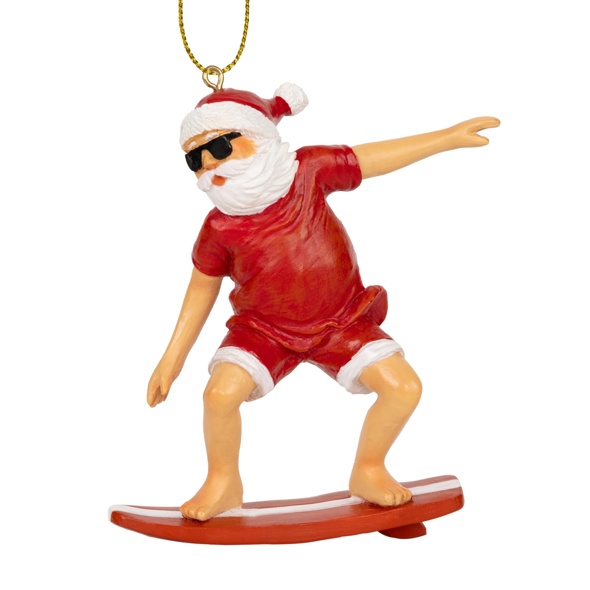 - Whether you're a beach lover, surf enthusiast, or simply love to add a playful twist to your holiday celebrations, our Surfing Santa Christmas Ornament is the perfect choice. It also makes a fun and memorable gift for friends and family members who share your passion for sun, sand, and holiday fun.