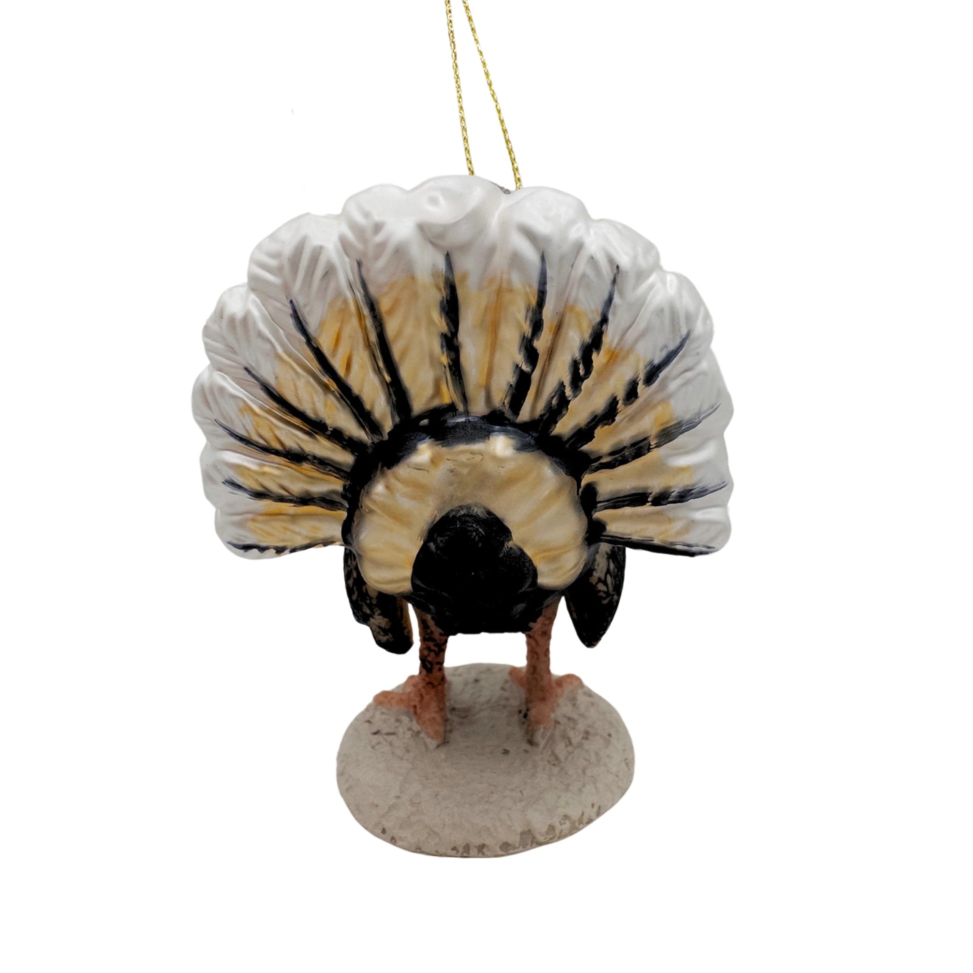 Details: Add a touch of Thanksgiving festive fun to your Thanksgiving and Christmas holiday decorations with this delightful Turkey Christmas Tree Ornament. Featuring a beautifully detailed turkey adorned with holiday accents, this ornament brings a unique charm to your Christmas tree. Perfect for those who appreciate quirky and creative decorations, this turkey ornament is made from high-quality resin materials and glass to ensure durability for many seasons to come. Celebrate the holiday season with a playful twist and make this charming turkey ornament a part of your Thanksgiving and Christma festive traditions! Weight 2.2 ounces Size in inches 3.5 in height, 3 length, 2.75 width