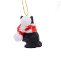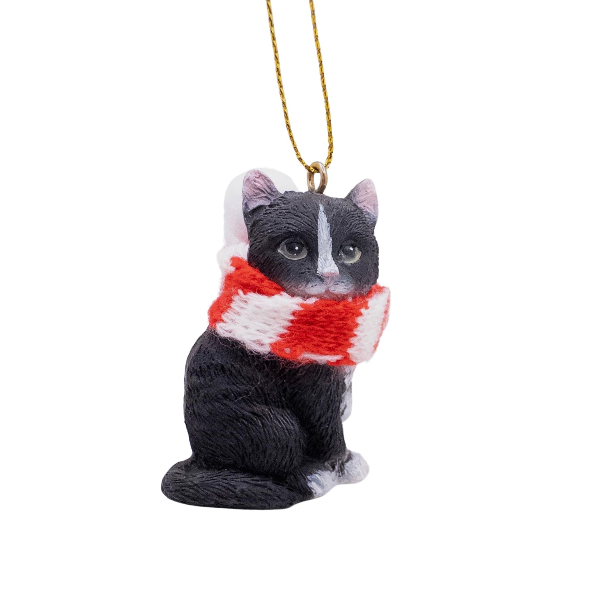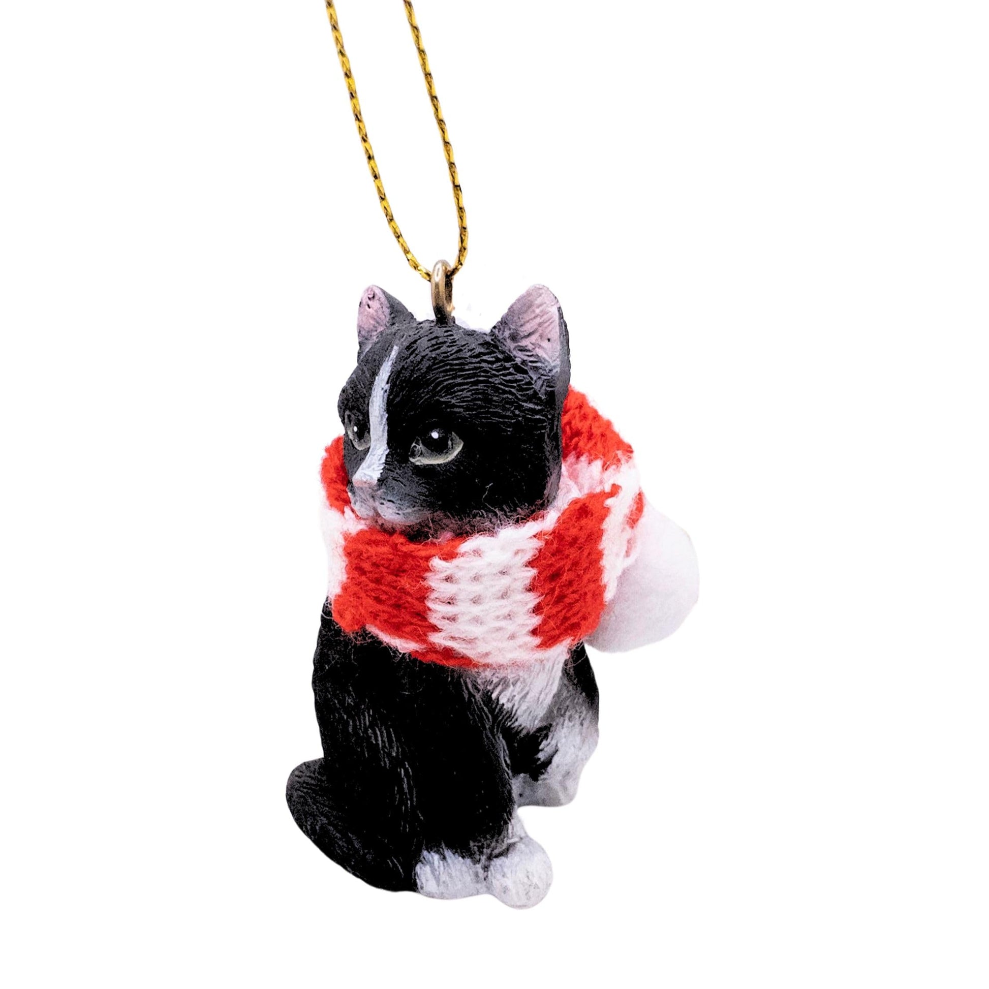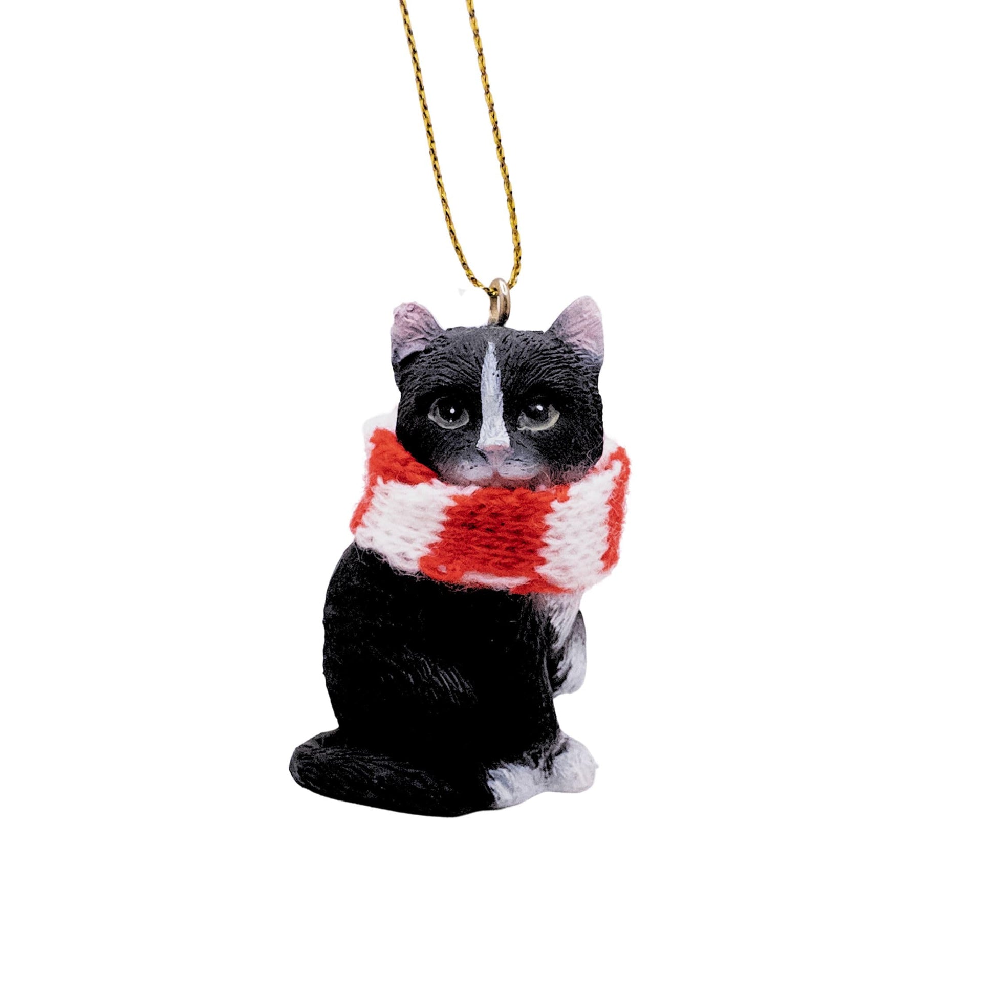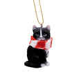 Tuxedo Black White Longhair Tabby Kitty Cat Christmas Tree Ornament with Candy Cane Scarf