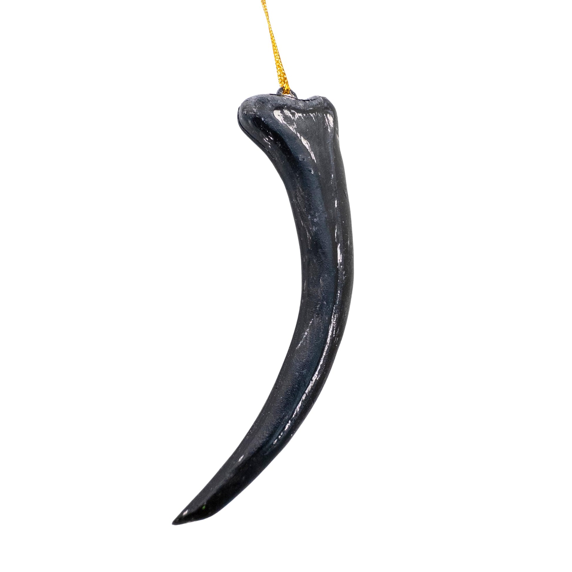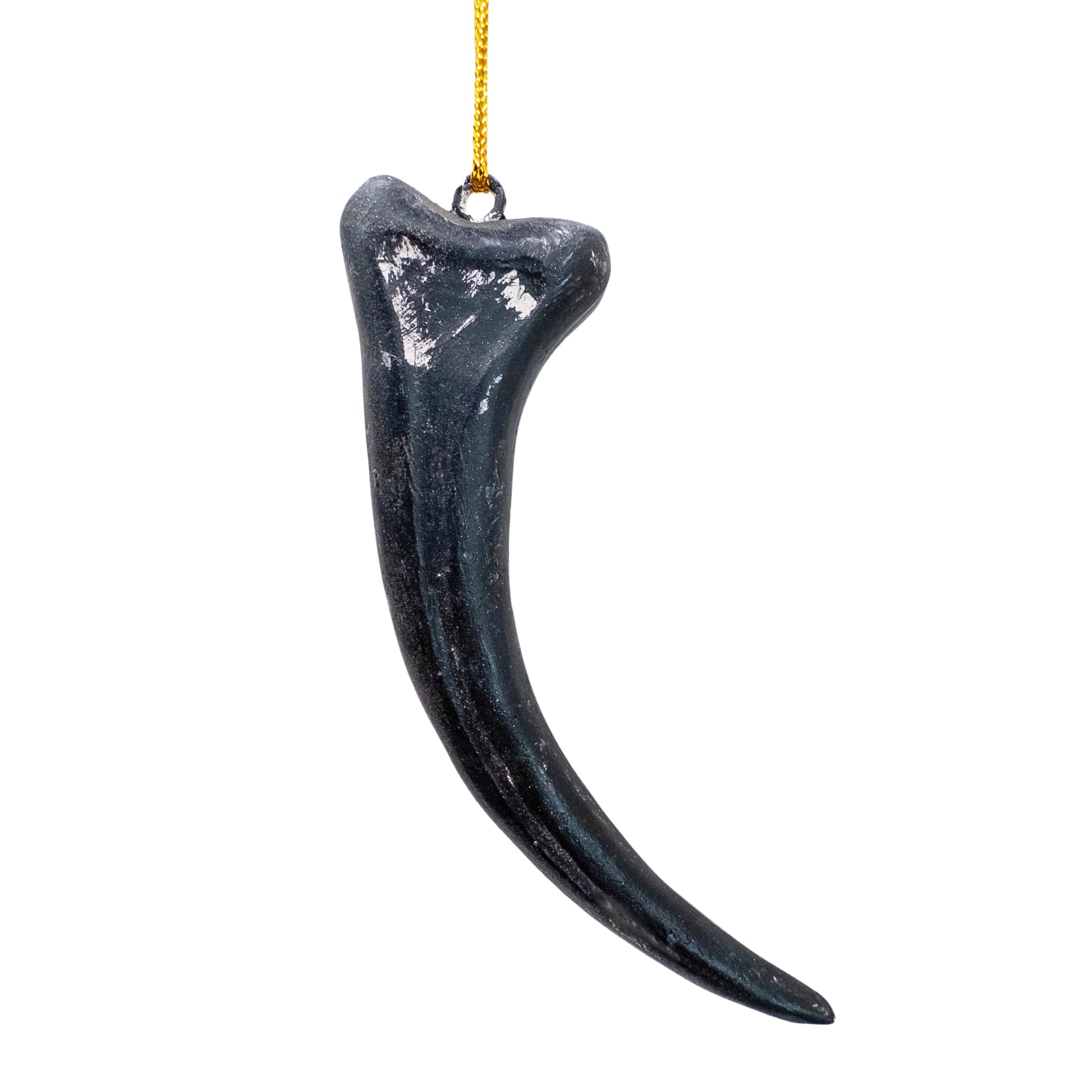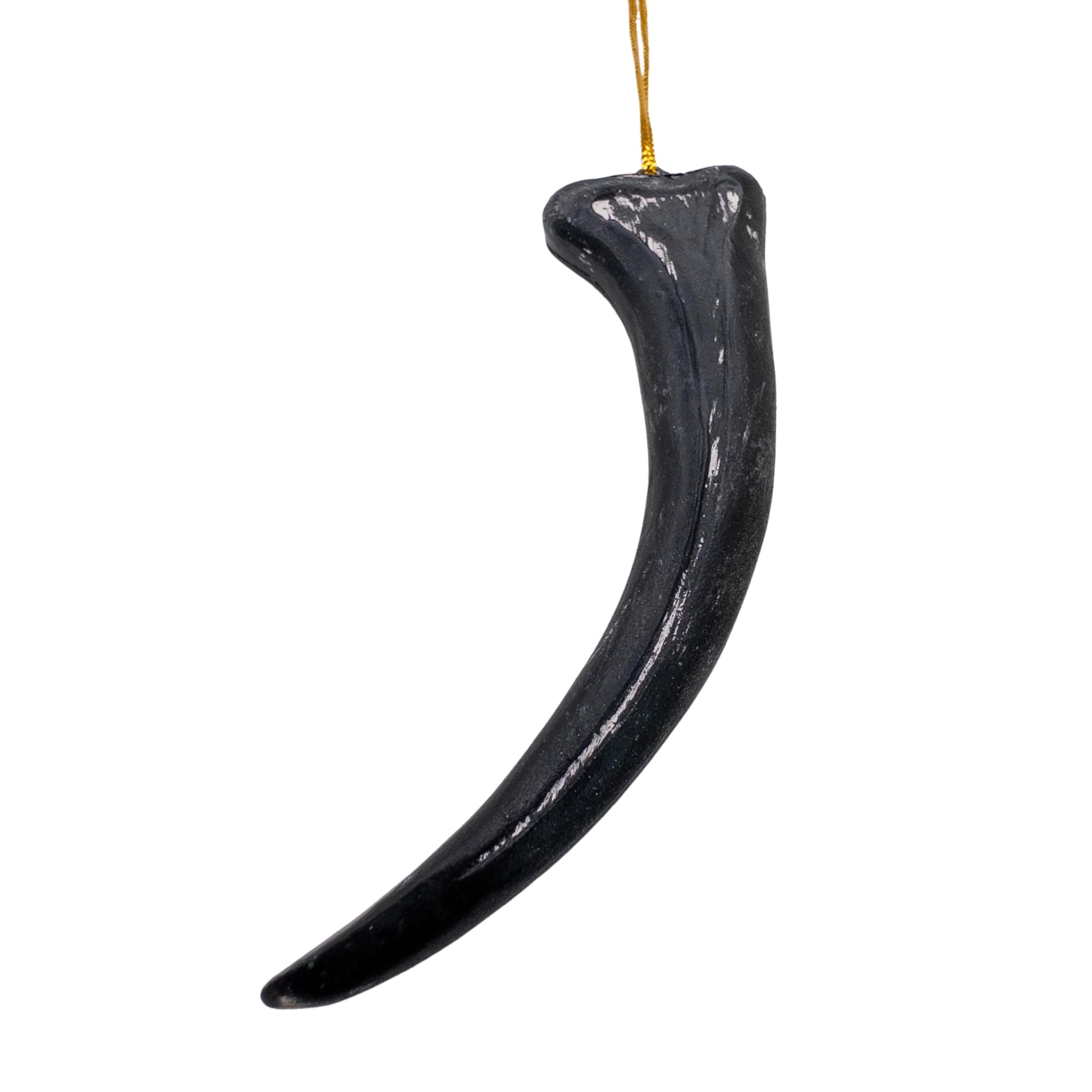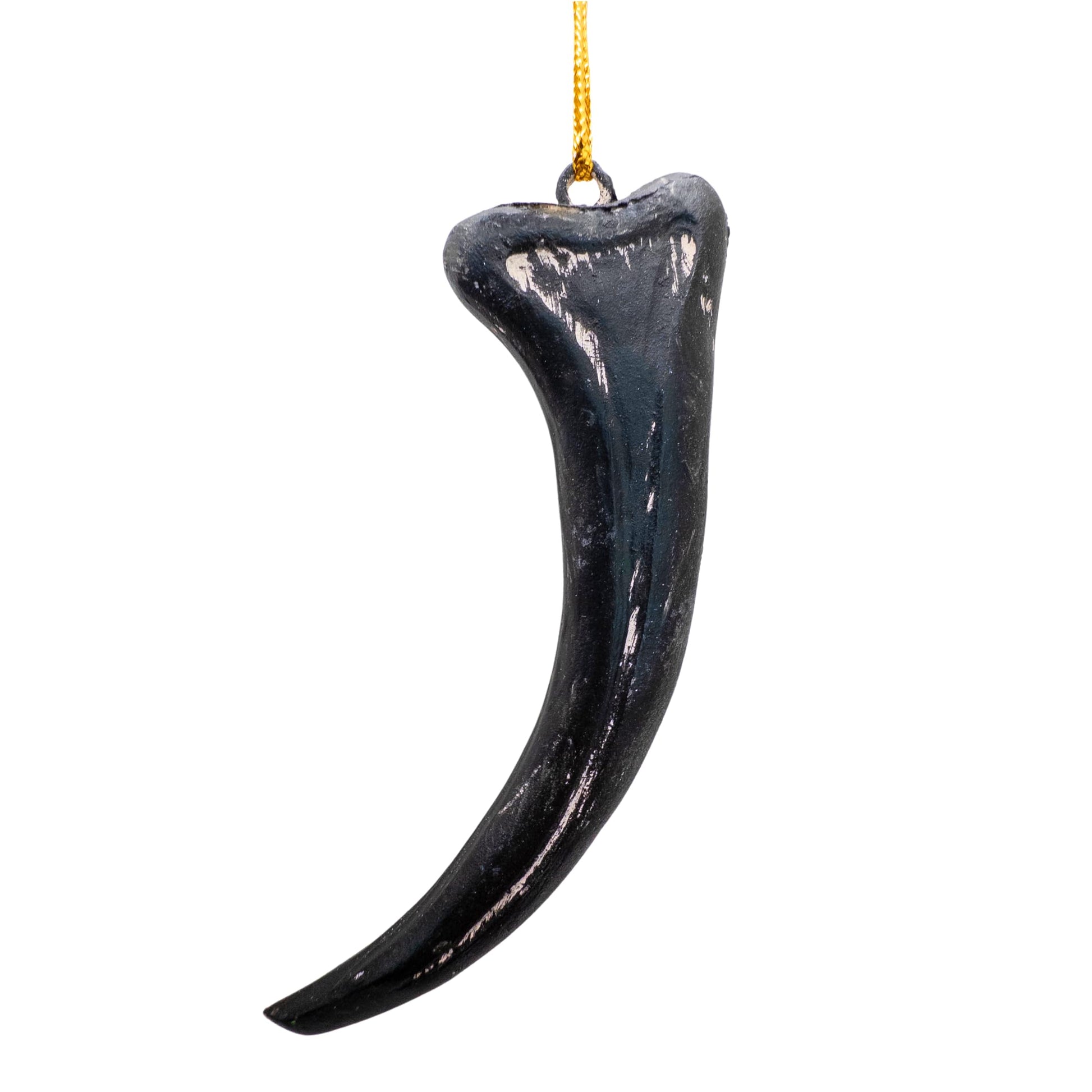 Details: Add a touch of prehistoric excitement to your holiday decor with this striking Raptor Claw Christmas Tree Ornament! Crafted to resemble the iconic curved claw of a fierce raptor, this ornament is perfect for dinosaur enthusiasts and adventure seekers alike. With intricate detailing and a realistic finish, it brings a unique and bold look to your tree. Made from durable materials, this ornament is both lightweight and easy to hang, making it a fun conversation starter for your festive decor. Perfect for those who love dinosaurs or want to add an edgy, adventurous vibe to their Christmas tree! Weight 0.6 ounces. Size in inches 4.0 height, 1 length, 0.37 width
