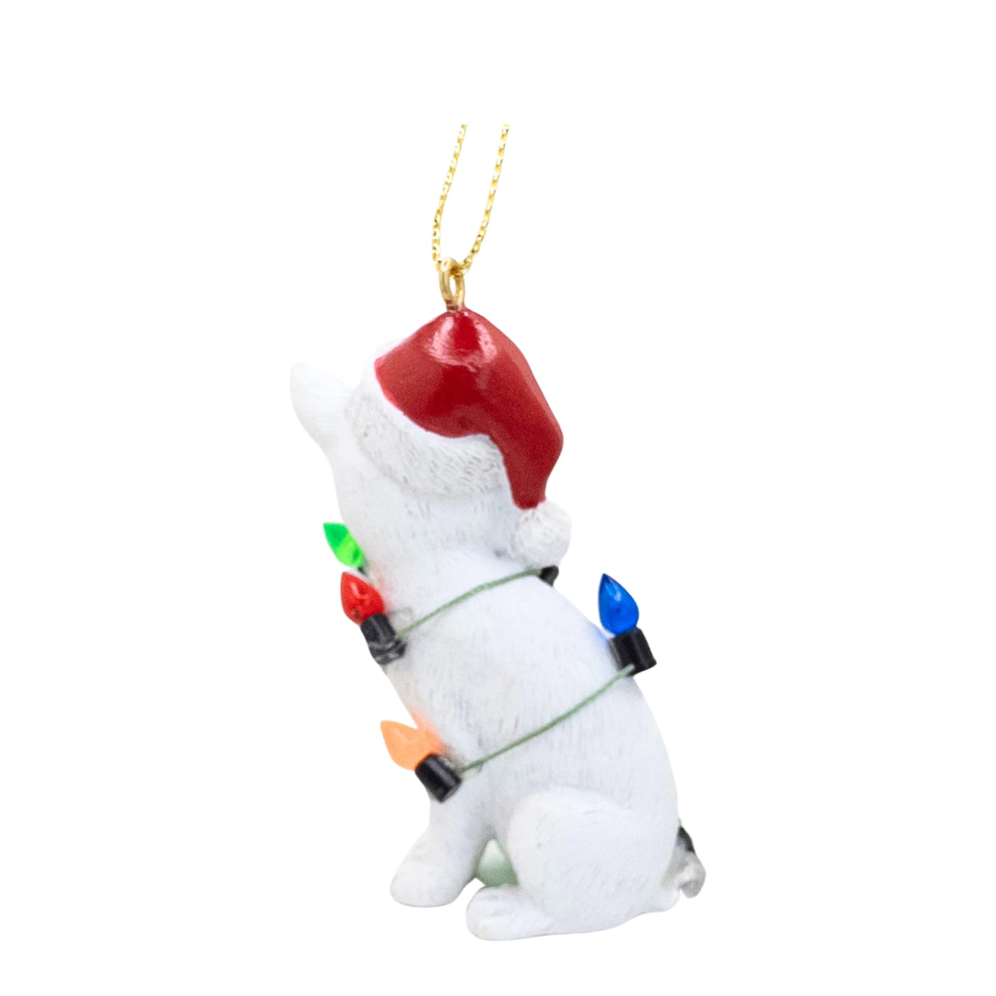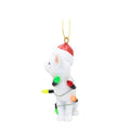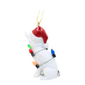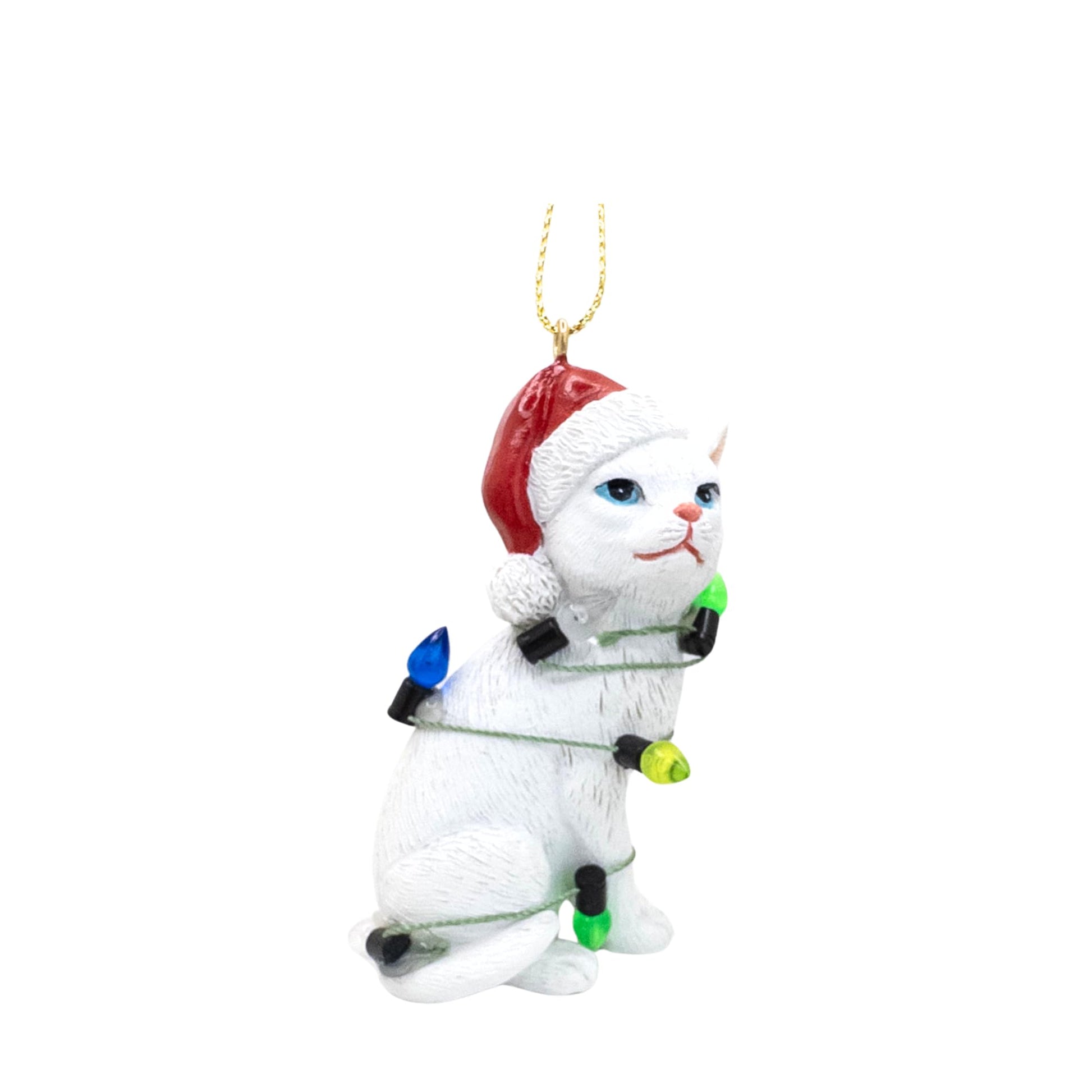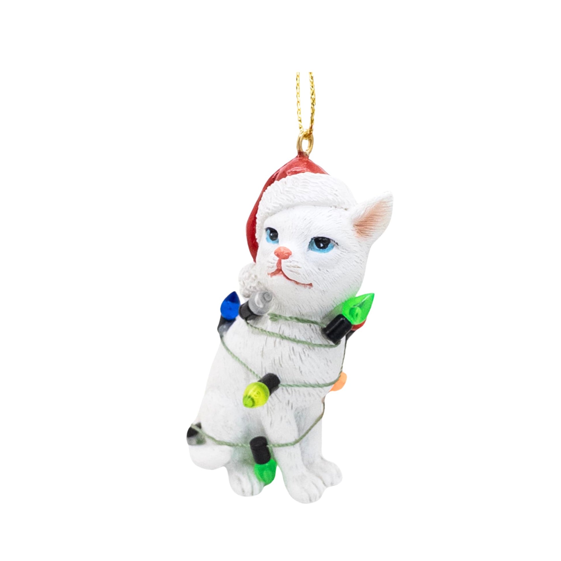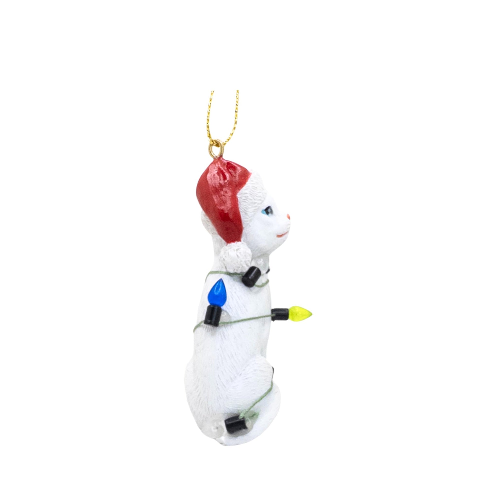 White Tabby Cat Christmas Tree Ornament with Santa Hat Wrapped in Christmas Tree Colored Lights