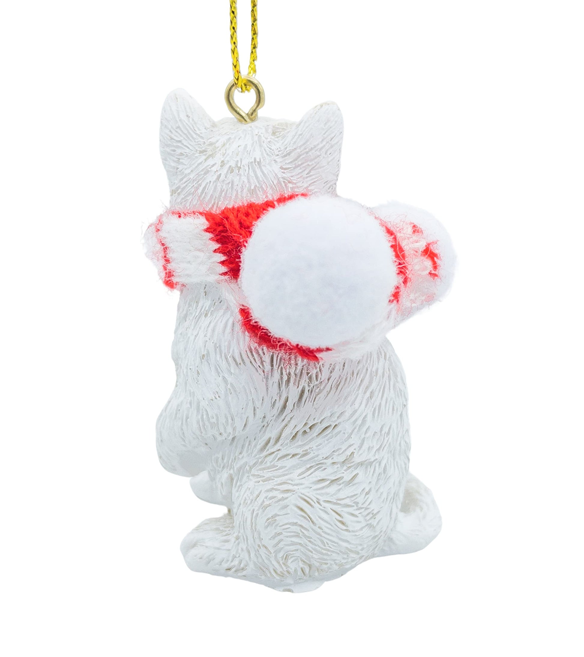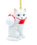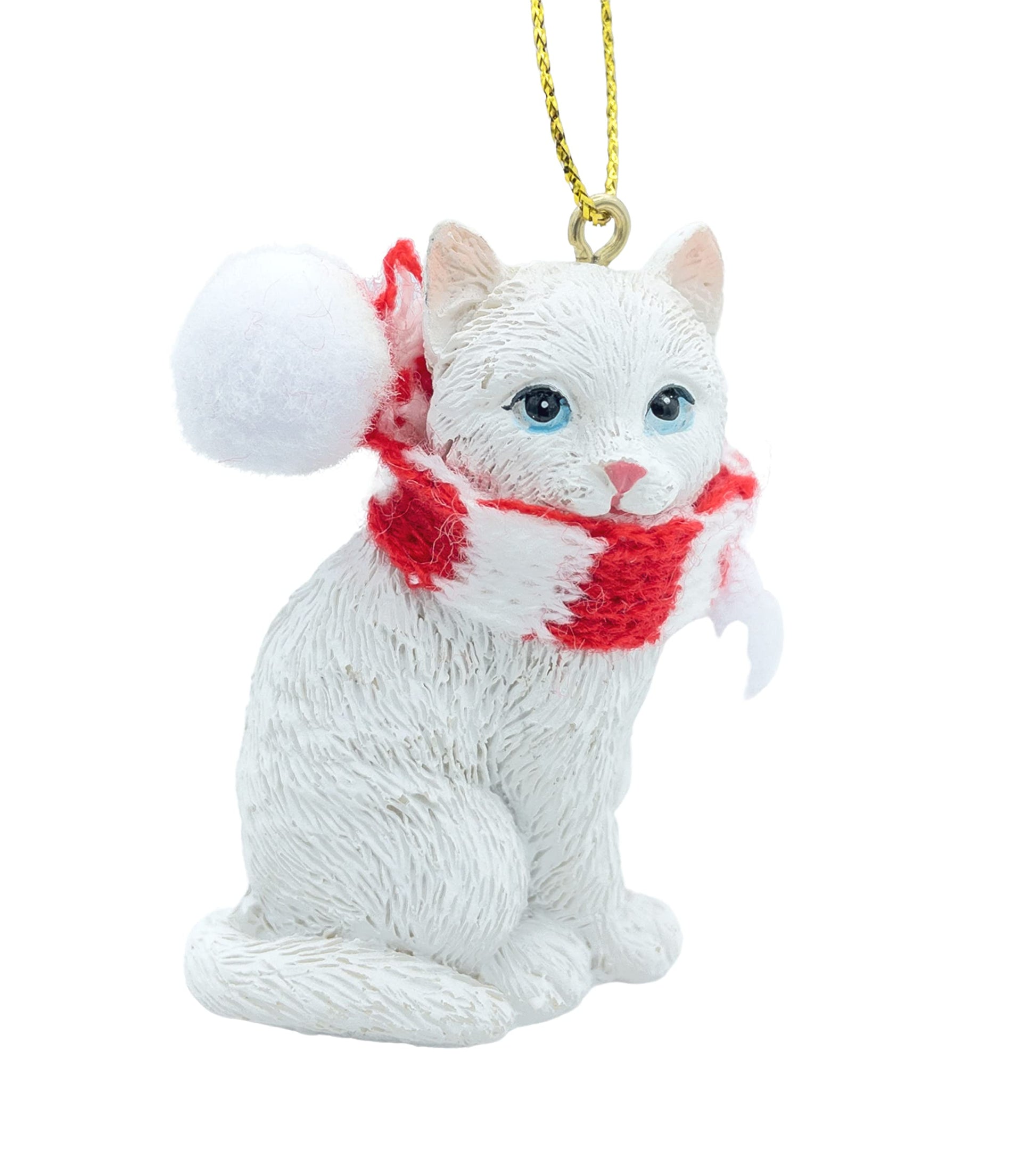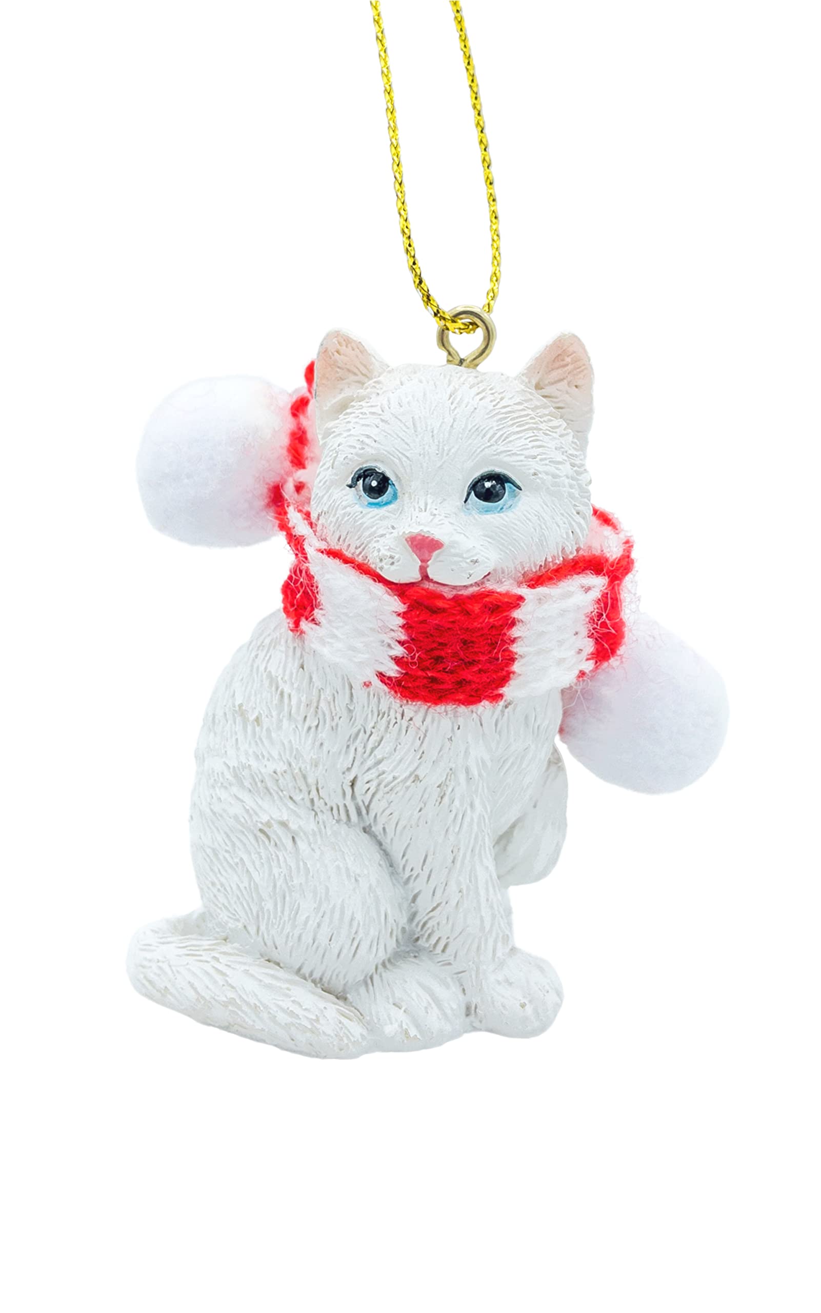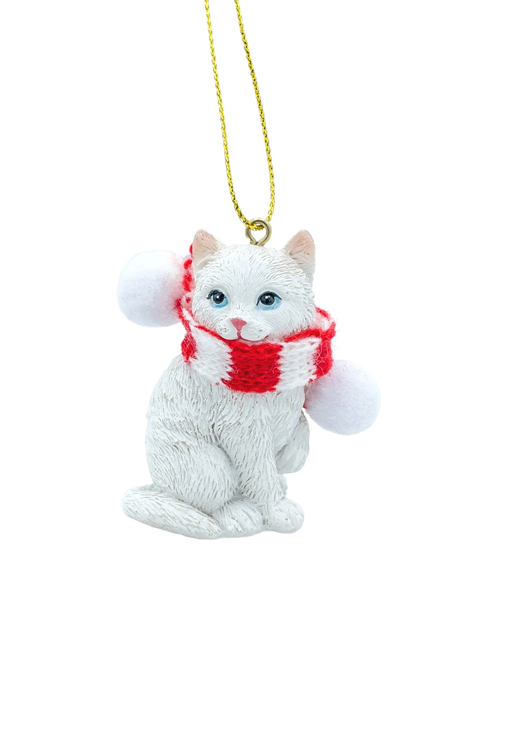 White Tabby Shorthaired Kitty Cat Christmas Tree Ornament with Candy Cane Scarf